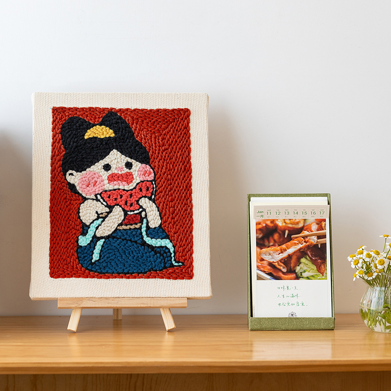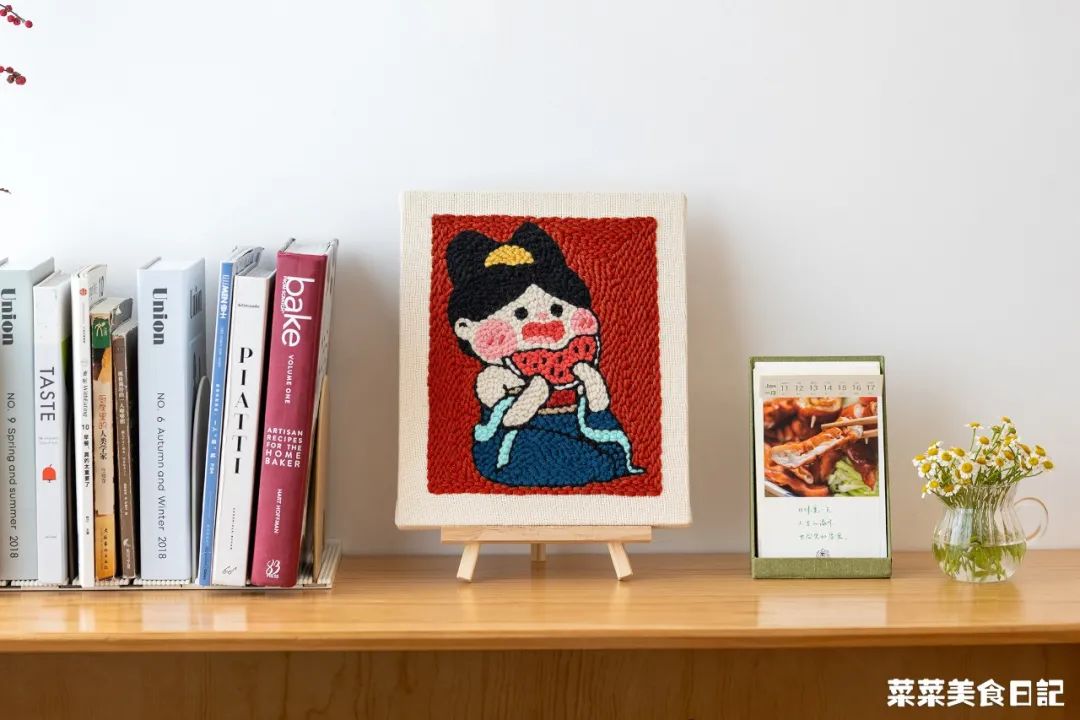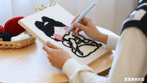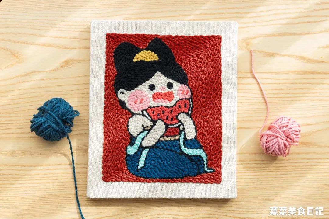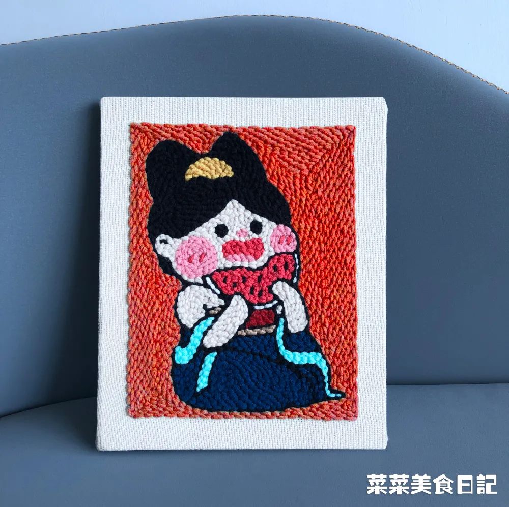 把漫画用毛线戳出来,毛线的立体蓬松质感更凸显了仕女的憨态。
