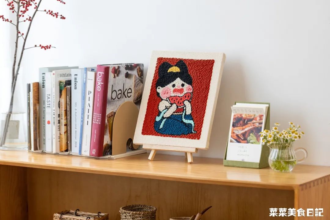 它还带有木框和支架,完成后可以直接摆放在家里当做装饰品。