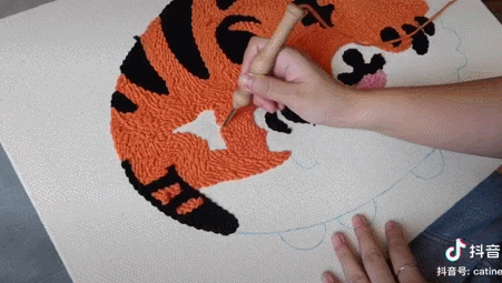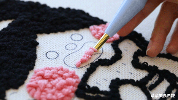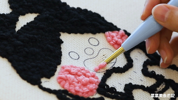 戳戳绣的原理其实是棉布纤维把粗线条锁住,但这是活锁,只要轻轻一拉就能扯出,然后重新戳一次即可。