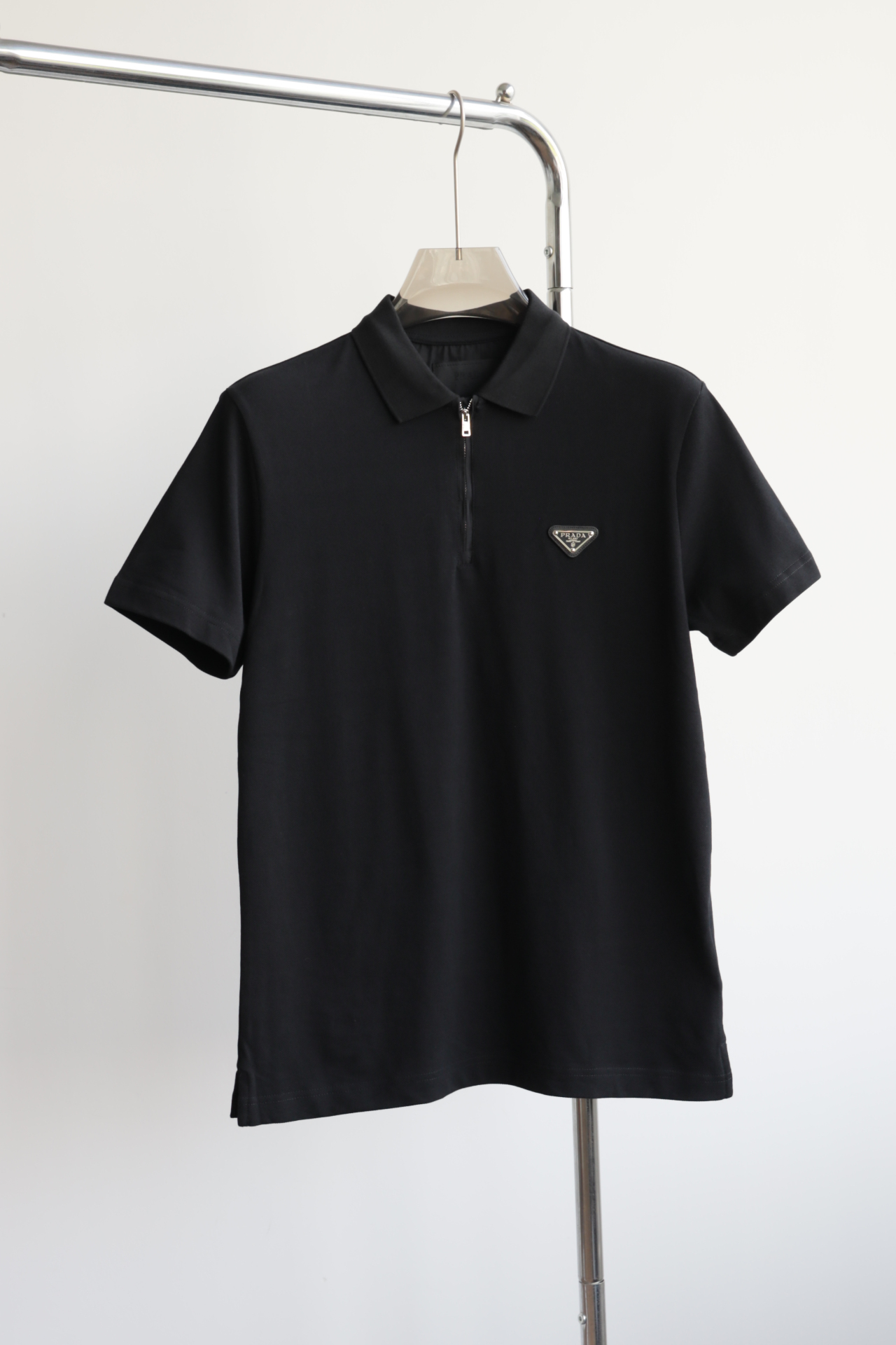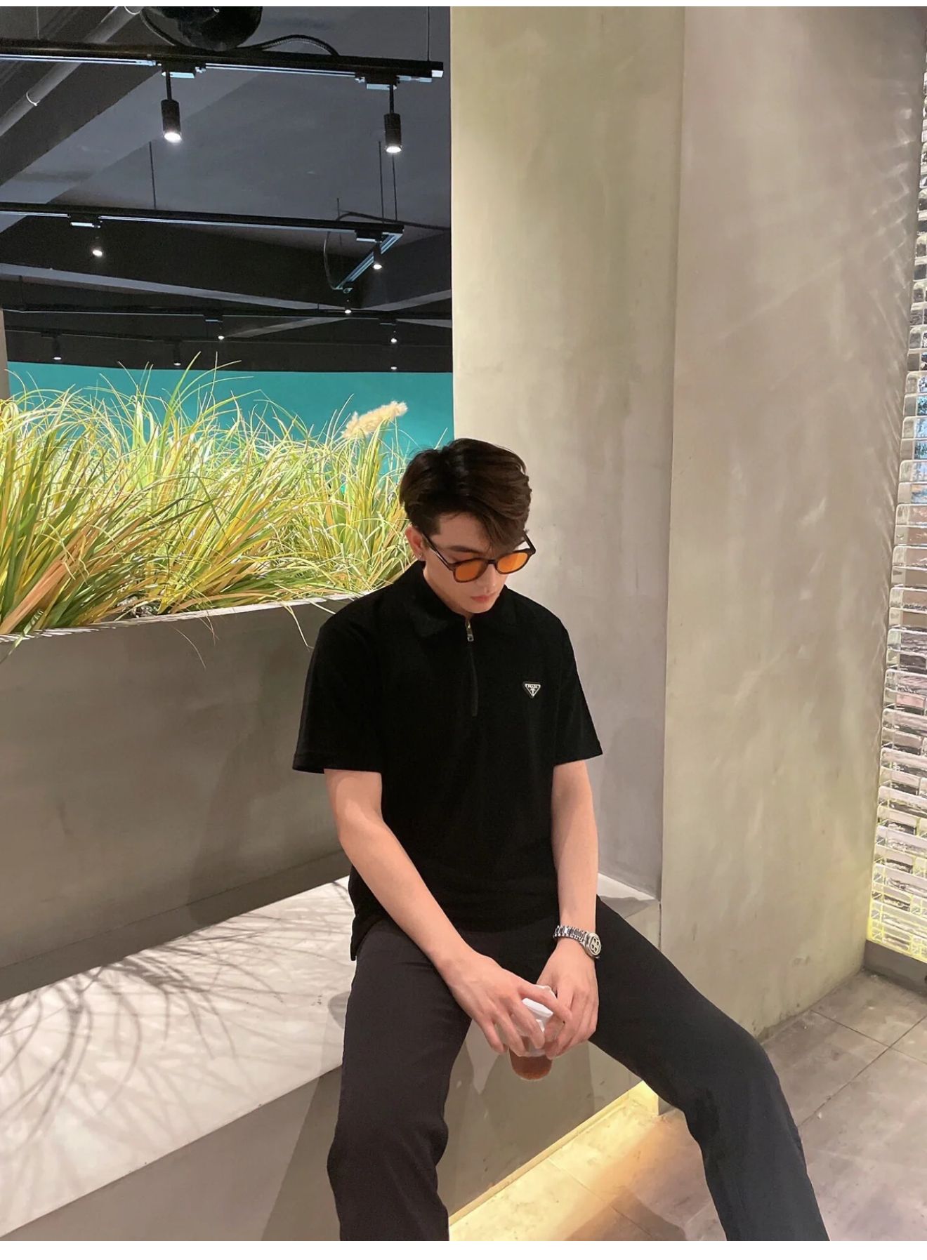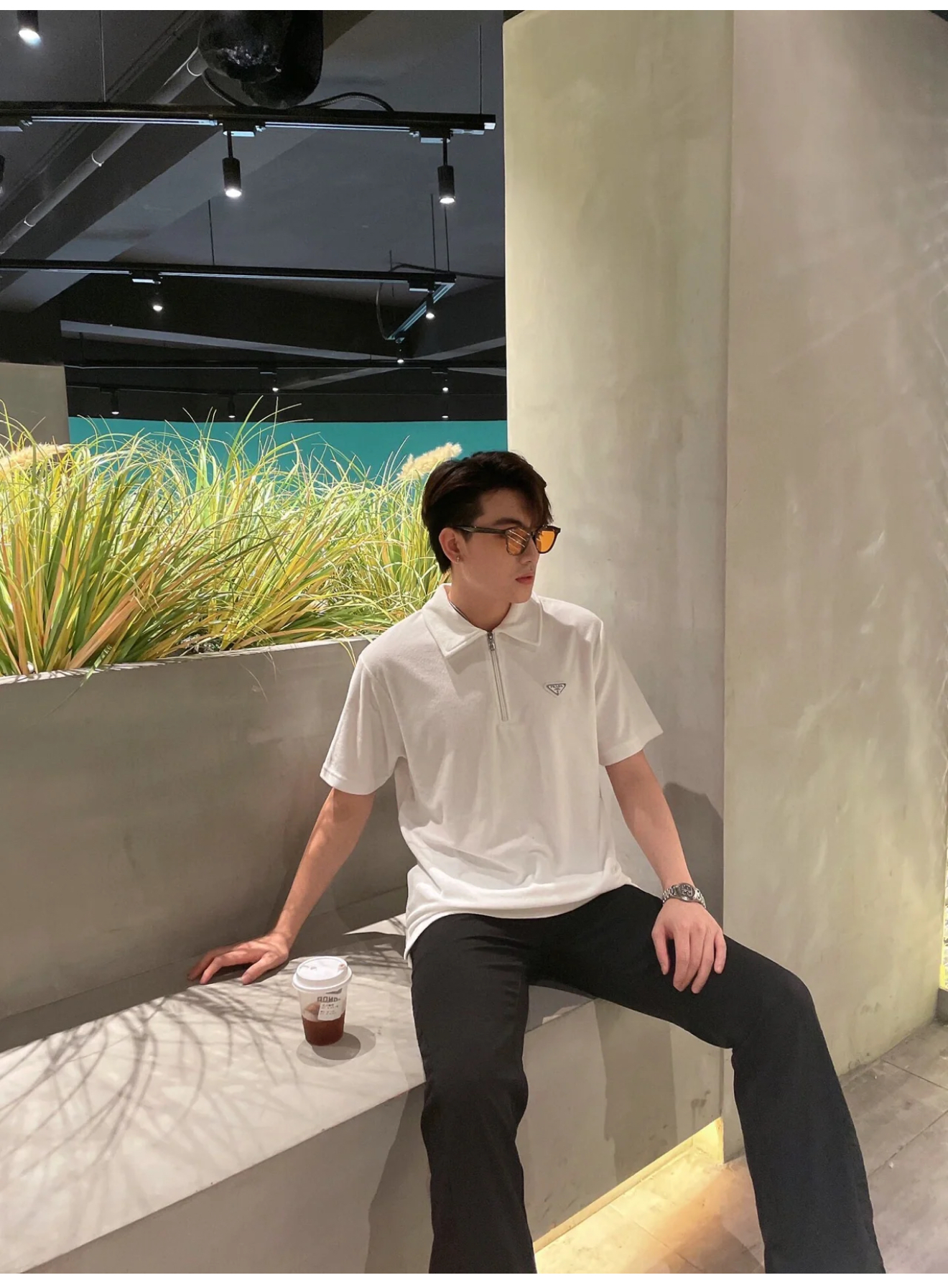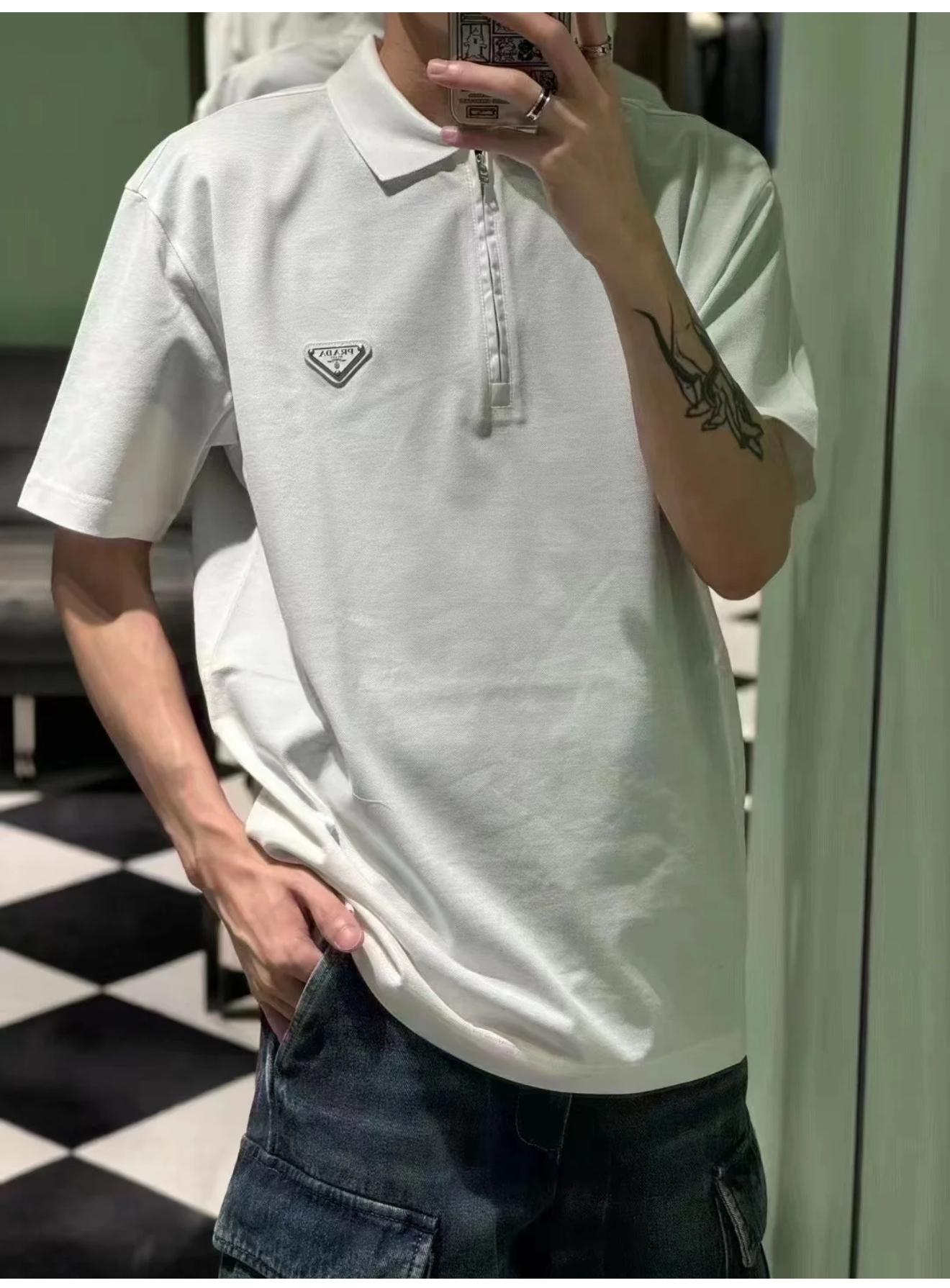 P.R.D 纯棉珠地 半拉链翻领短袖T恤