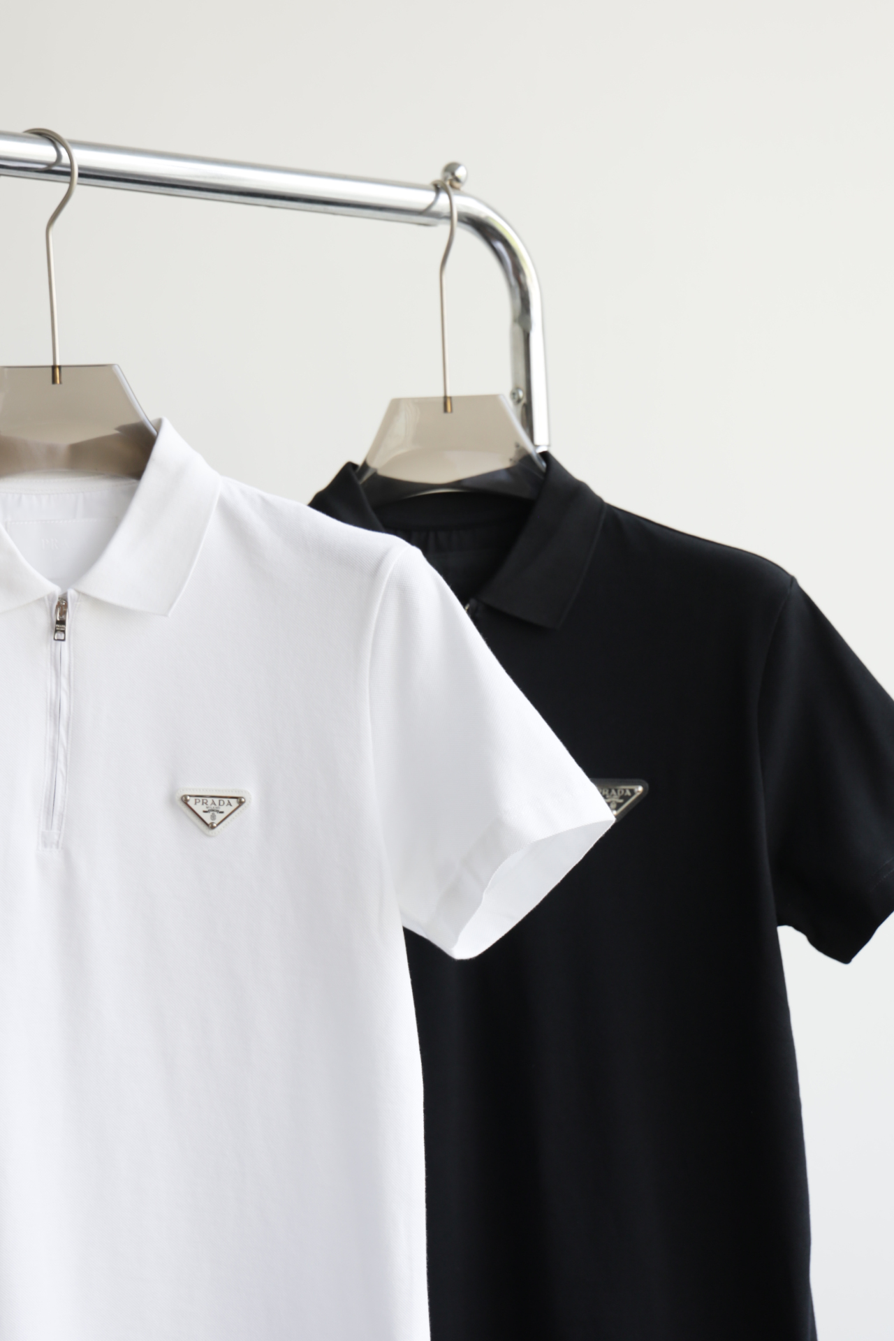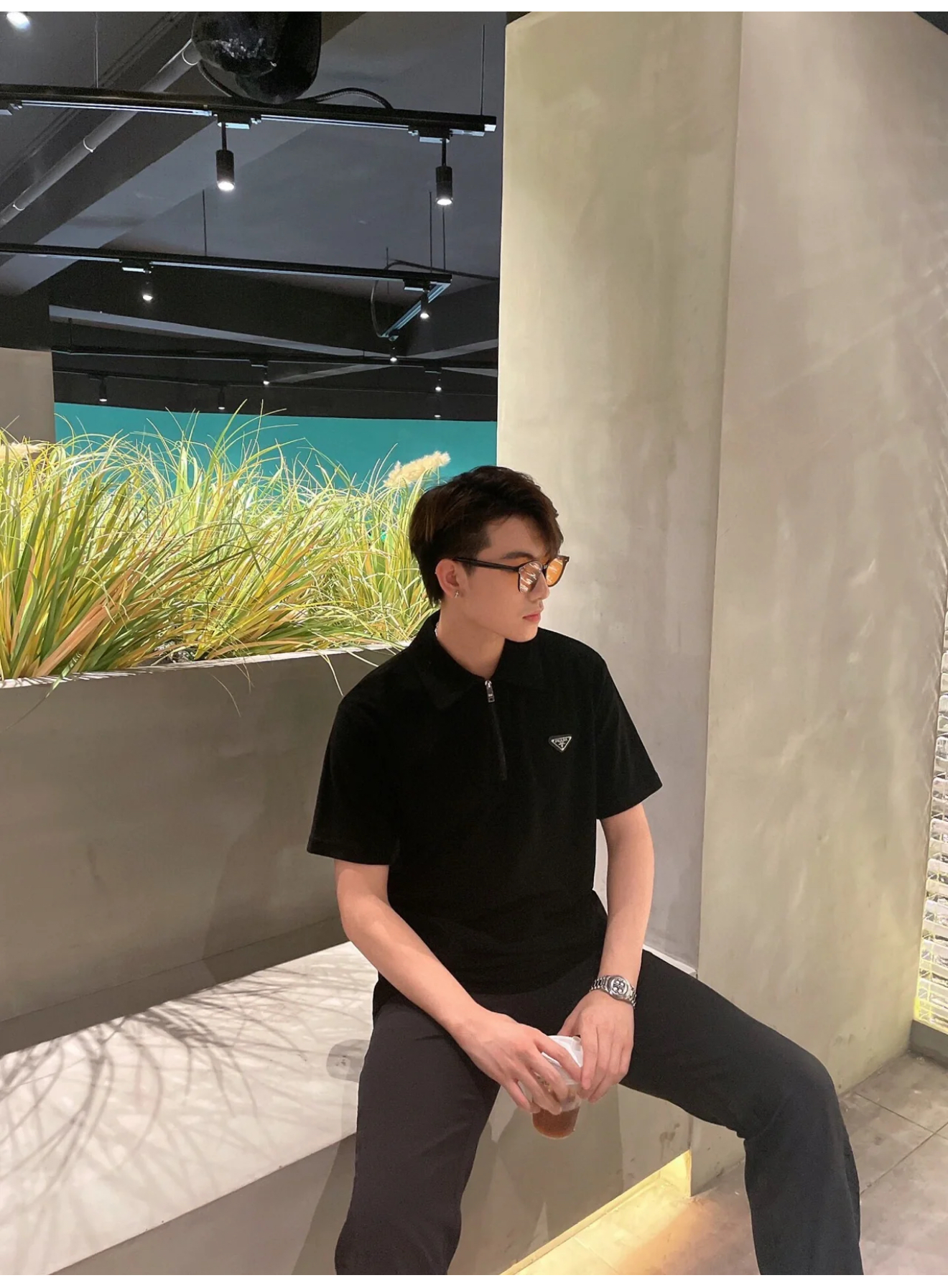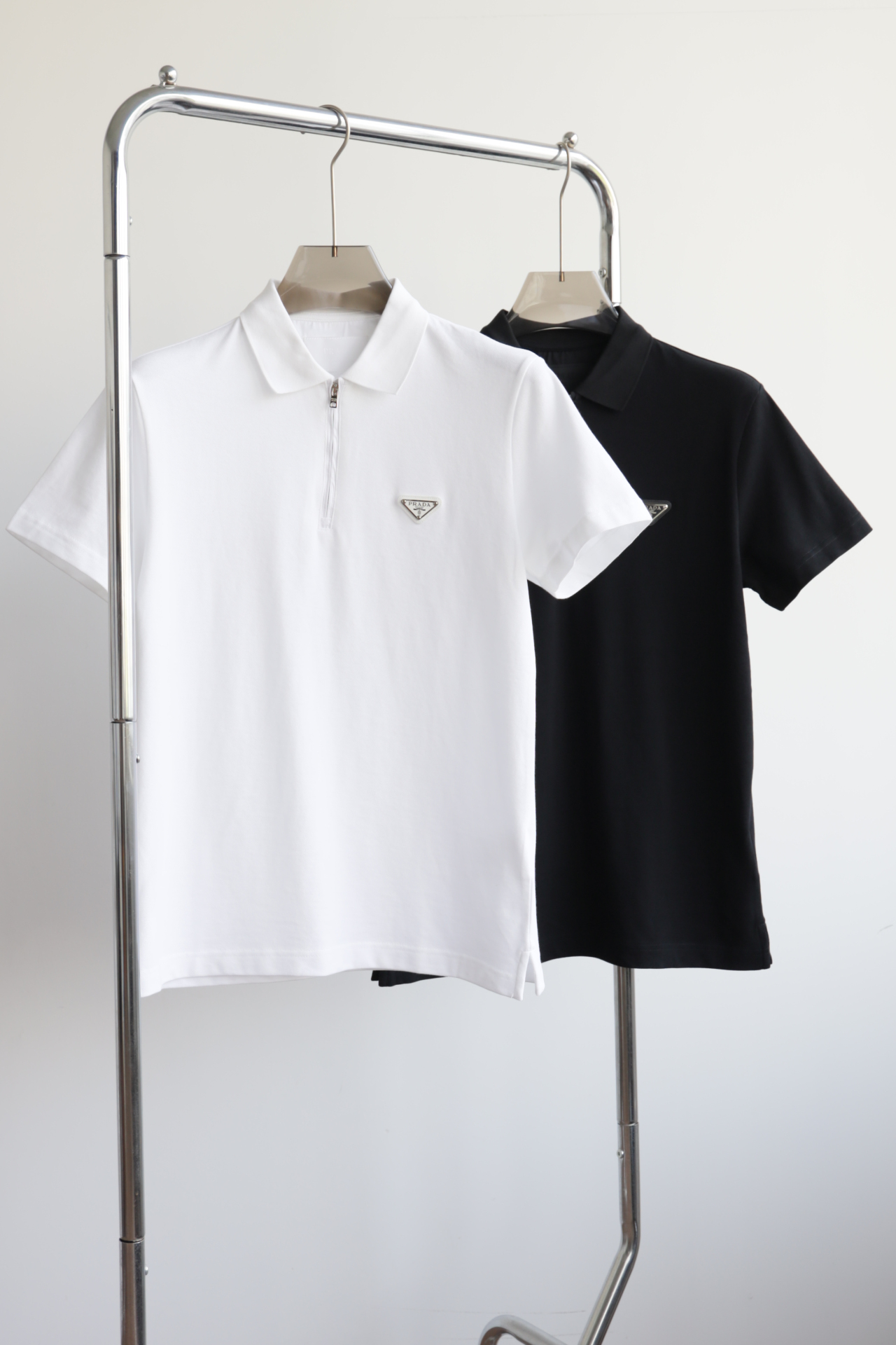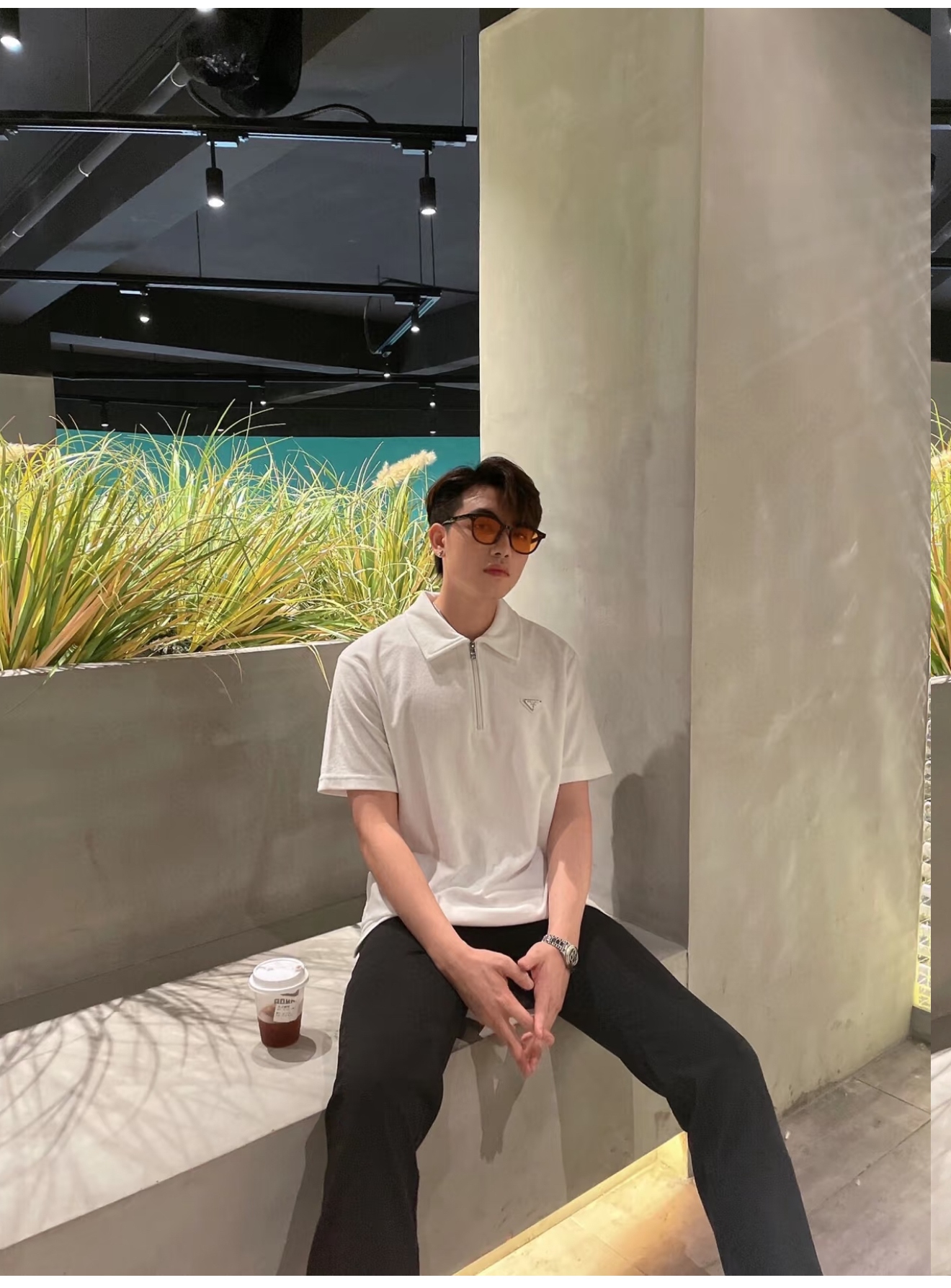 P.R.D 纯棉珠地 半拉链翻领短袖T恤