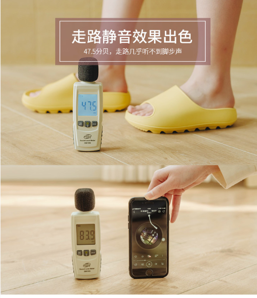 实测只有47.5分贝,走路几乎听不到脚步声