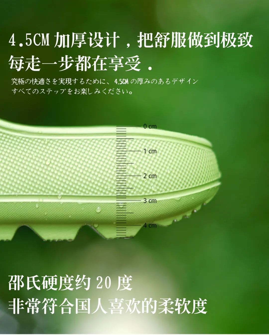 2、4.5cm加厚鞋底设计:Q弹、柔软、不湿脚,还增高、显瘦、显腿长