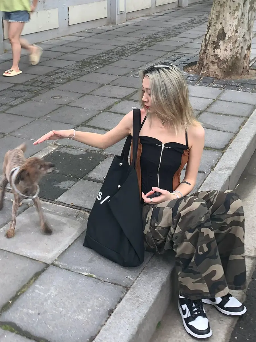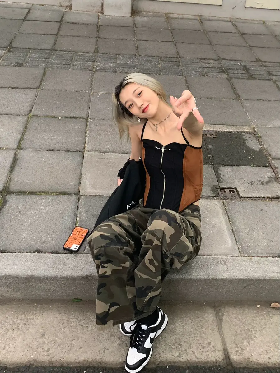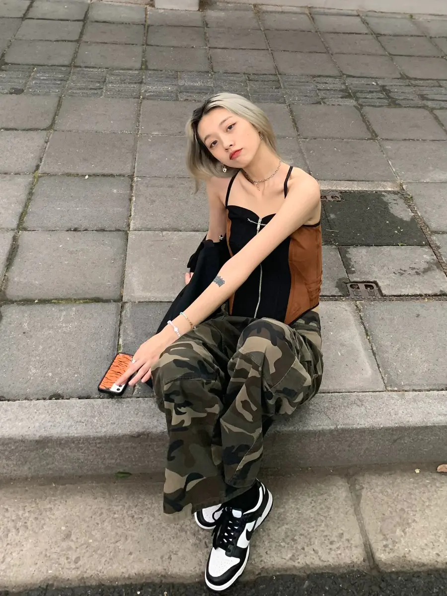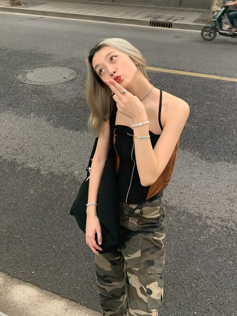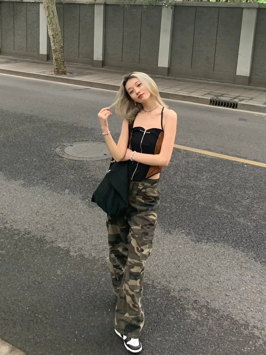 辣妹OOTD|性感鱼骨配迷彩工装裤好出彩✨
