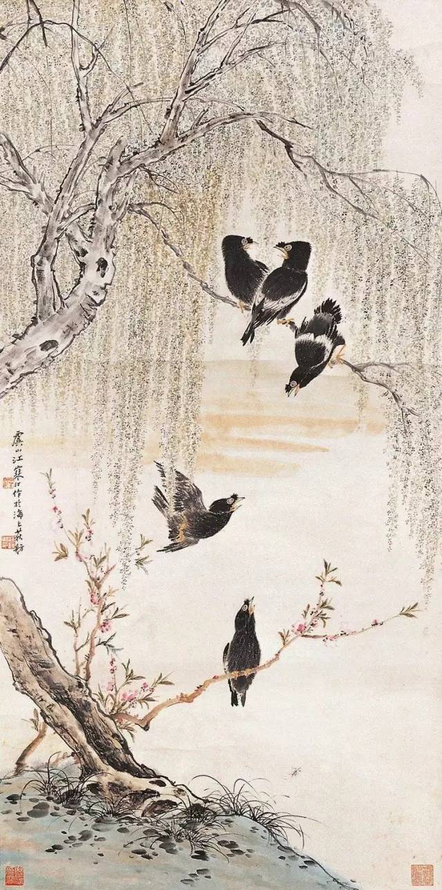 禽鸟在中国画中又称为「翎毛」,可区分为水禽与山禽两大类,依其生活习性,又可分为涉禽、游禽、猛禽、攀禽、鸣 禽、雉禽等类,各类的特微与习性如下: