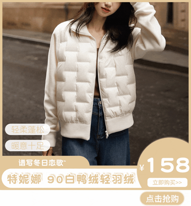 你买回家,跟商场里随便一件都得好几百的羽绒服比比,就知道我们这¥158的定价有多香