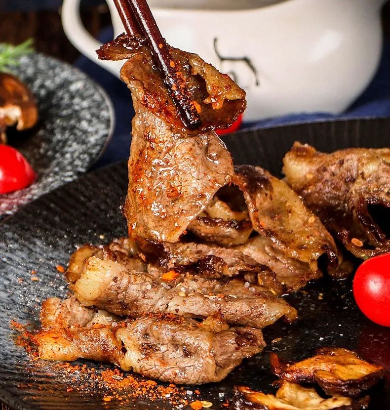 肥牛片,是我烧烤时不可或缺的一部分。那肥瘦相间的肉片,在炭火上翻烤时,油脂逐渐融化,散发出诱人的香气。烤熟后的肥牛片,肥而不腻,口感滑嫩,每一口都是对味蕾的极致挑战。