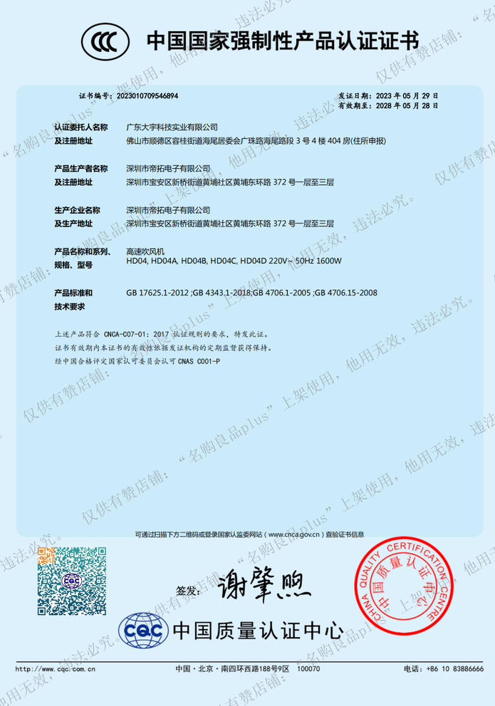 通过各项检测并拥有3C认证