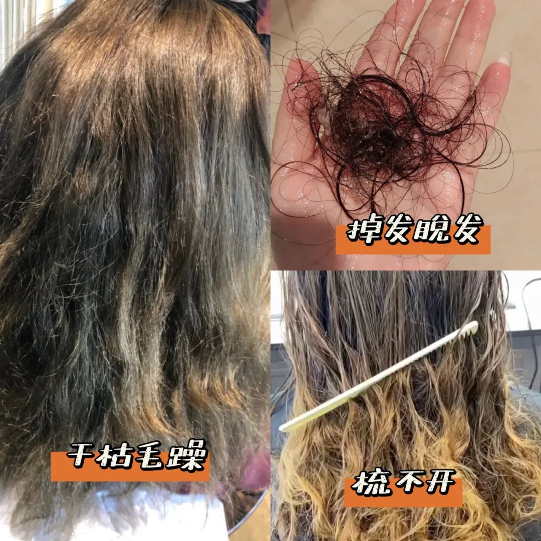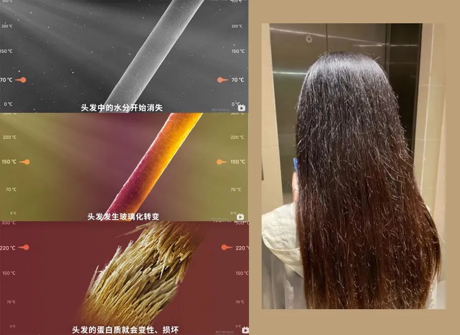 还会让头发之间大量正电荷运动起来产生静电,所以会很容易“毛糙”、“炸毛”。