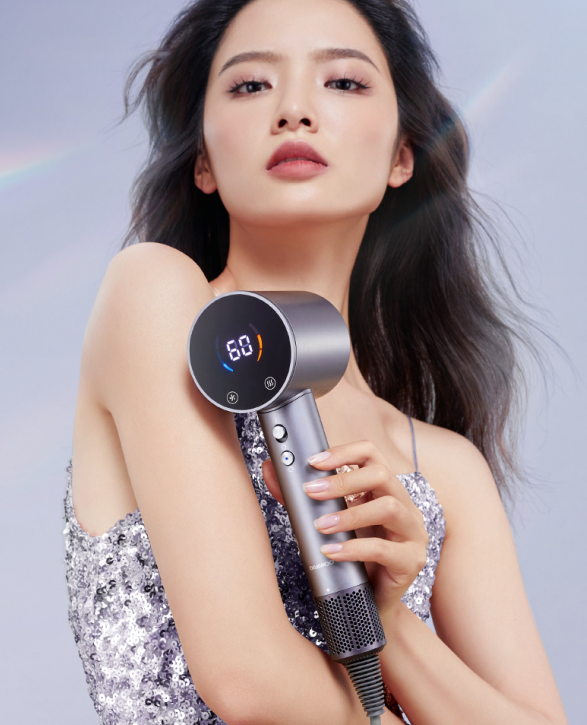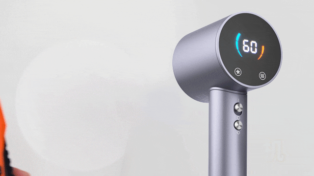 为了让大家准确的这些数值,这款高速吹风机设有高清可视化显屏设计,风温风速状态一目了然