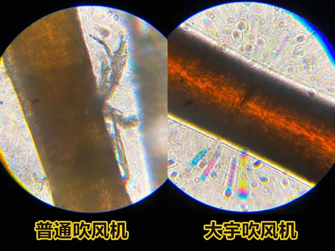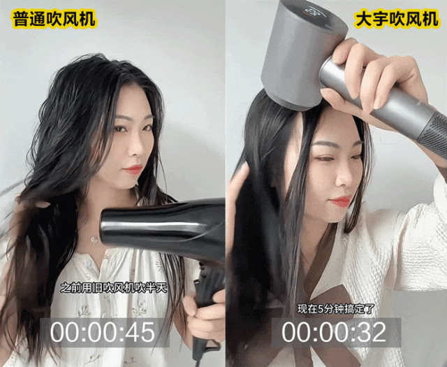 为了检验大宇吹风机的速干能力,我们用普通速干吹风机进行风力对比。