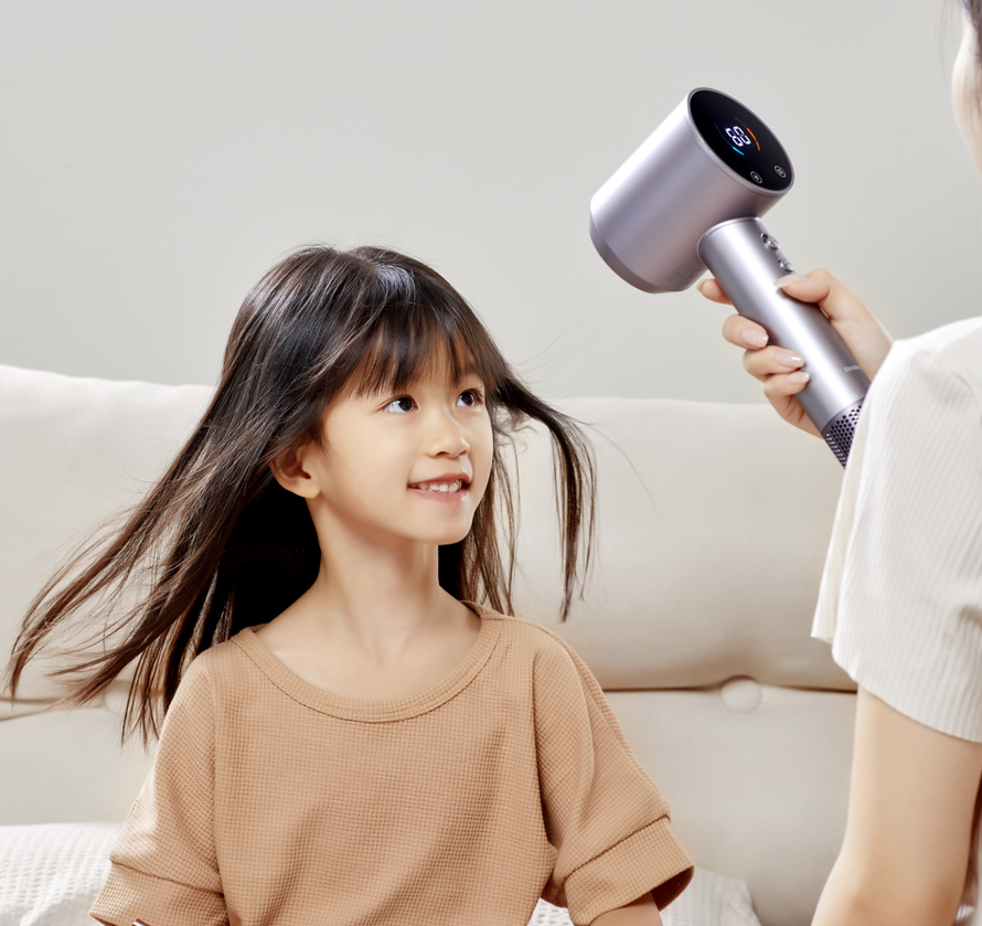 因为是速干和养发二合一的吹风机,大宇吹风机给家里的小朋友用效果也特别好,不会伤害宝宝柔软的头发。