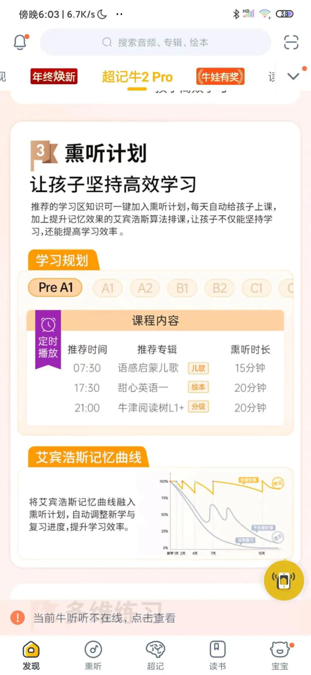 (根据艾宾浩斯曲线来设置熏听计划、音频倍速这些功能,目前市面上都只有牛听听有。)