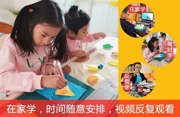 课程采用录制视频模式,全套38节黏土课+12节会员赠送课,共50节视频课,在家上。