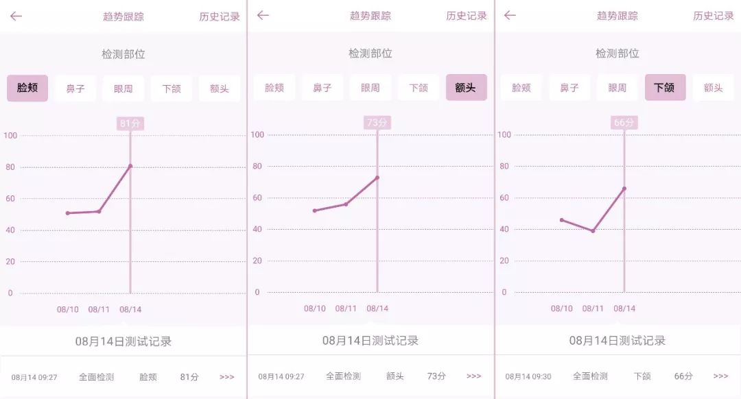 ▲ 从滋润度、敏感度、细滑度、紧致度、色沉度这几个角度做出的综合评分