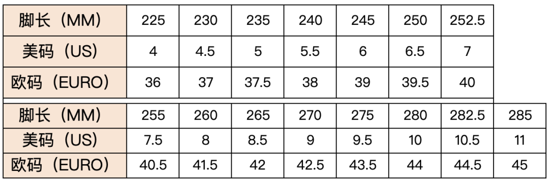 尺码表如图,36-45的尺码,超全!