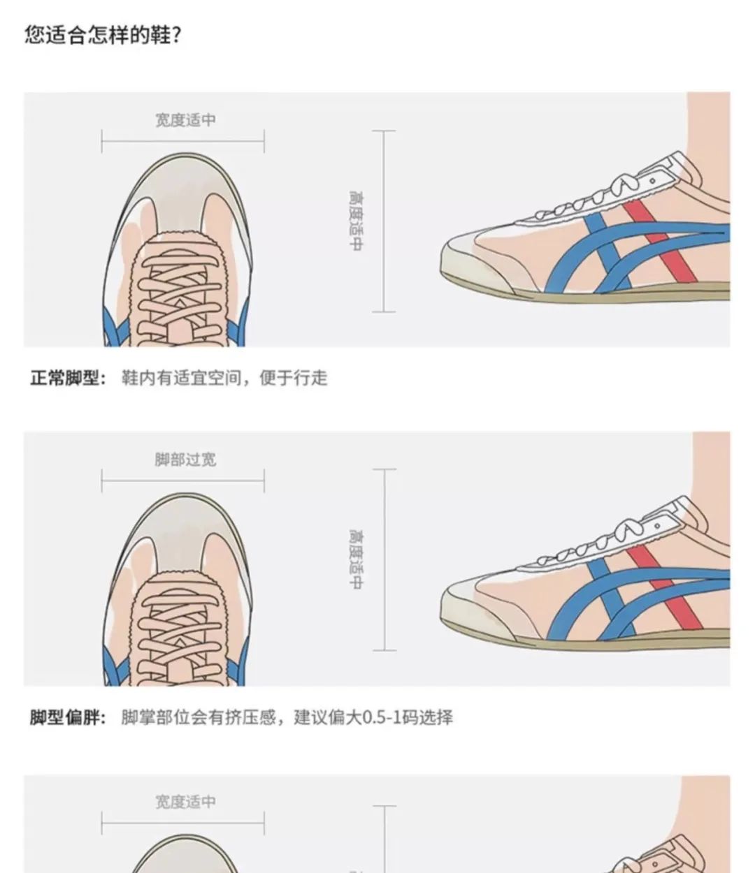 脚宽、脚背高的姐妹,建议比平时选大一码。