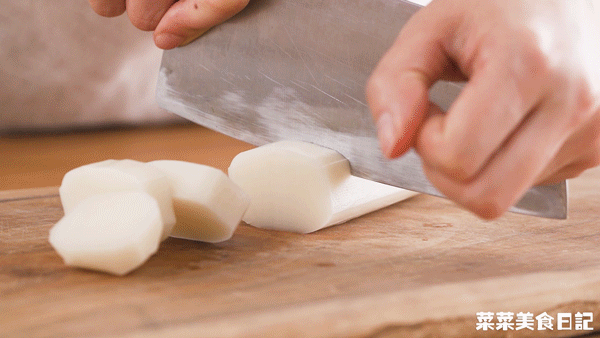3.煮一锅沸水放入年糕片片煮2-3分钟,煮至浮起,捞起沥干
