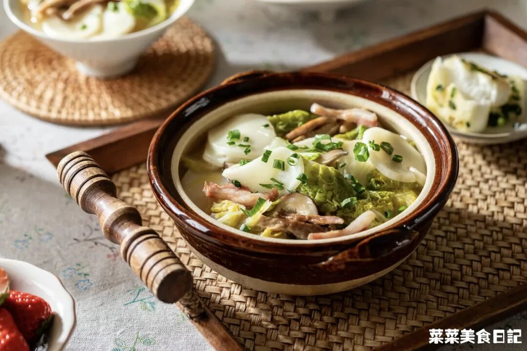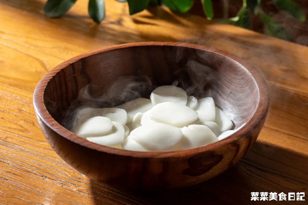 随着牙齿的开合,调味的咸、辣,揉进清白的年糕,与米香米甜混到一起,朴素而动人。