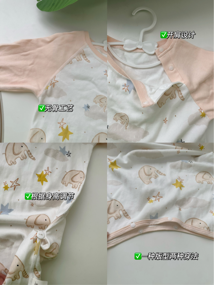 开肩的设计,穿脱方便。还是长袖的,防风又保暖。而且它还有一体式和分腿式两种穿法,宝宝平时玩耍的时候就可以解开扣子,自由活动不束缚,睡觉的时候就可以把扣子扣上,不担心宝宝着凉,真的很贴心了~