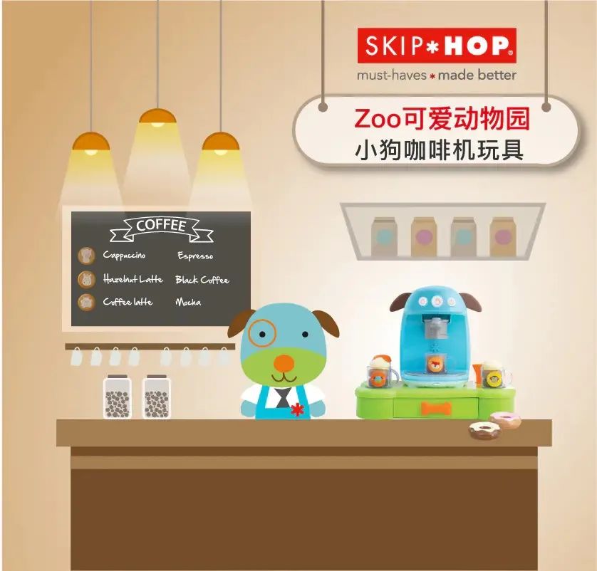 让孩子从小懂得搭建一个攀登而上的梦,就从skip hop益智小狗咖啡机做起,秒变著名“咖啡师”!
