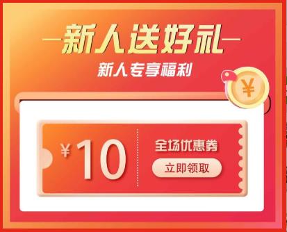 4:进入新人福利界面,领取新人专属10元优惠券(可以用于购买新人3选一豪礼)
