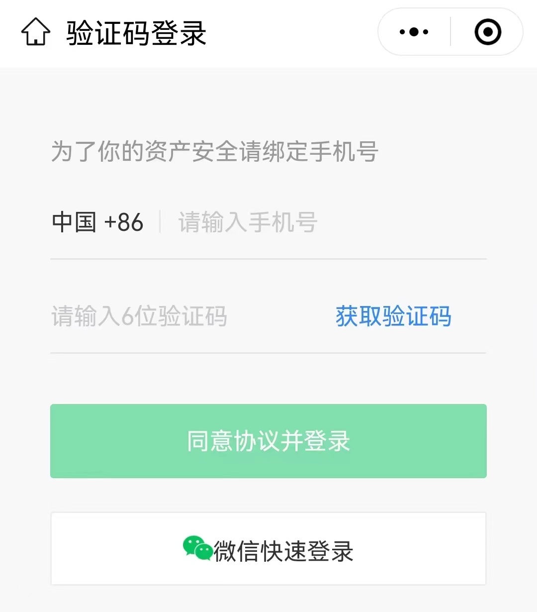 2:进入登录界面(可以选择手机号验证码登录,也可以微信快速登录)
