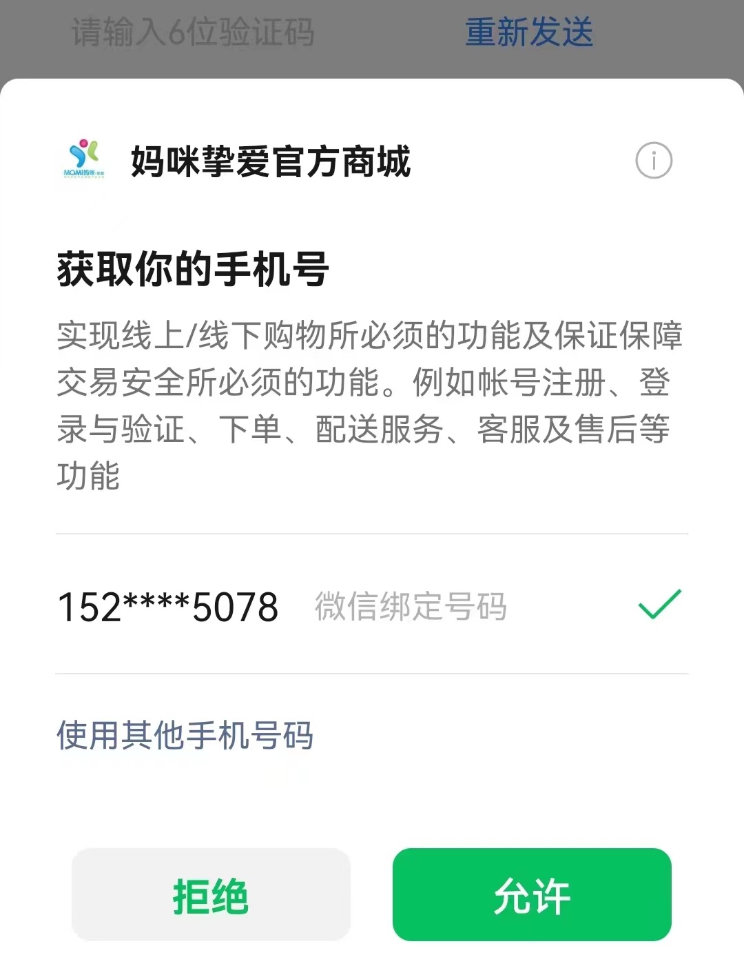 3:选择手机号,并允许授权