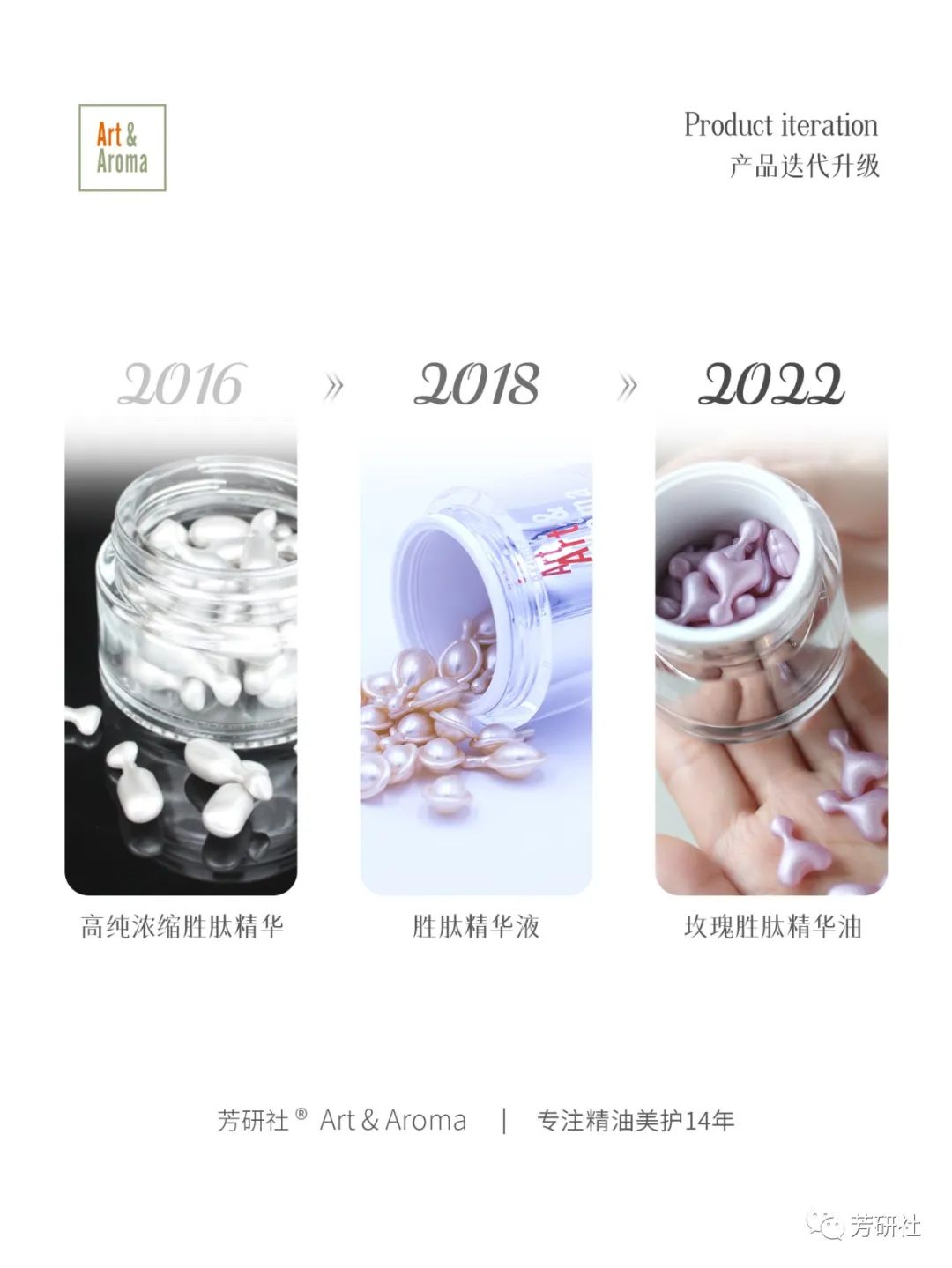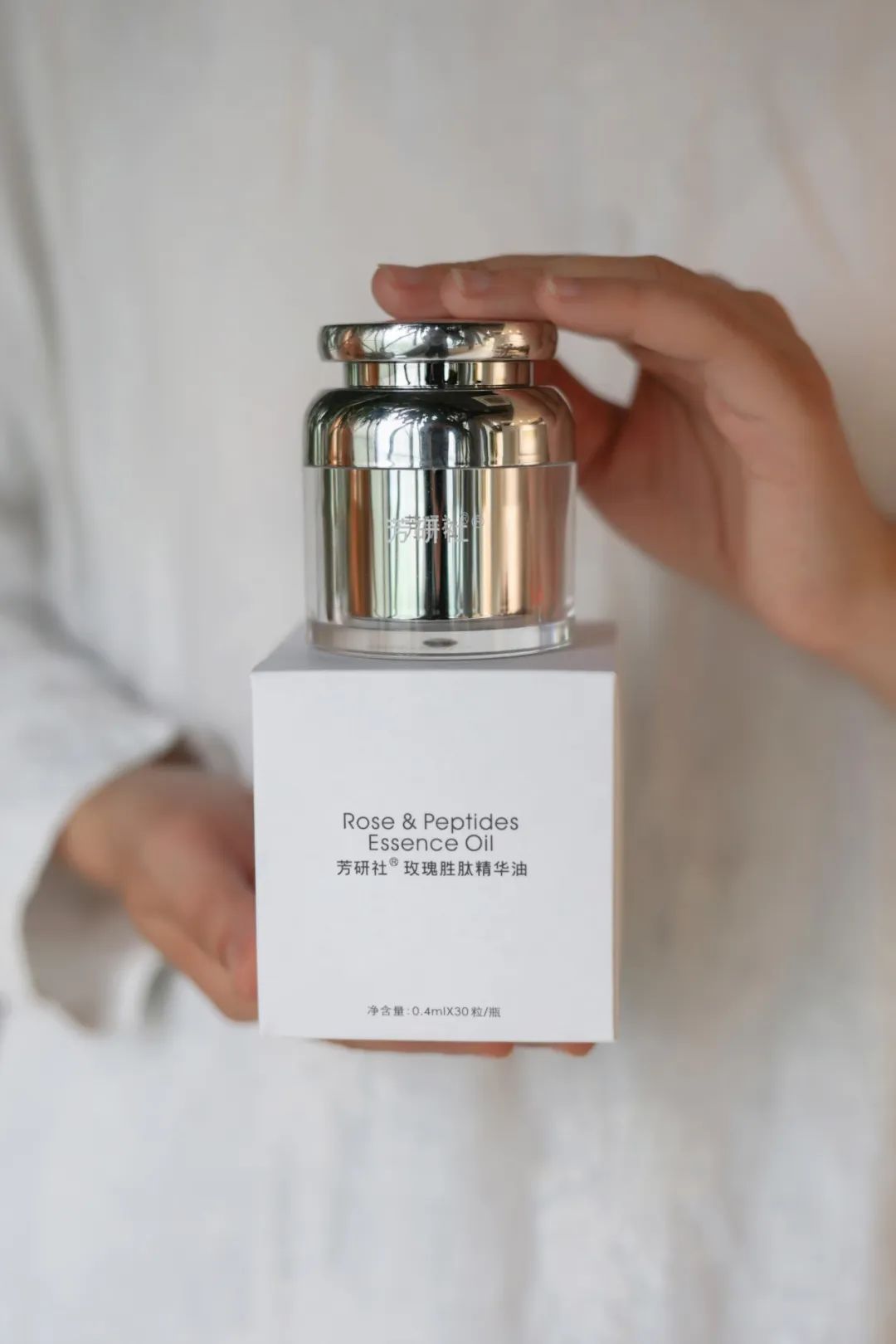 芳家的胜肽胶囊从2016年开始问世,第一版来自国外实验室,以乙酰基六肽-8为主要成分,因明显的淡纹效果和极佳的使用体验,卖了18万+粒,创了芳家产品的销量记录。但这家实验室比较大牌,不愿意给我们定制化配方,而芳友们又对精油调香非常期盼,所以就有了2.0版本。