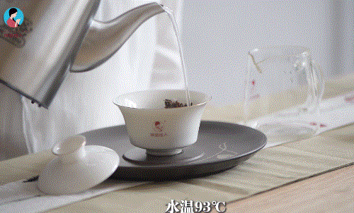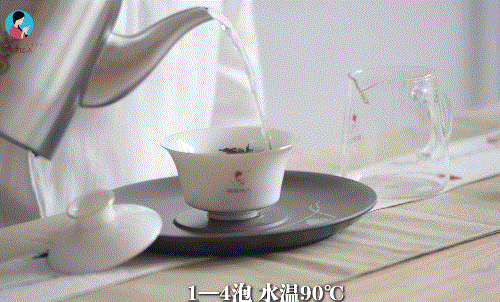 1—4泡:水温90℃,高扬旋转注水,用盖碗盖子轻轻将茶叶全部浸没入水中,出汤时停顿15秒左右。