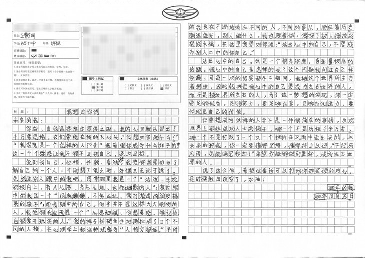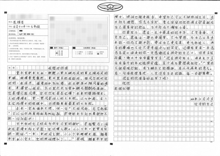 生活即是写作,写作即是生活。“我想对你说”在我眼中就是对未来自己的一种期盼,一种憧憬。从现在做起,从生活出发,这样写出的文章首先能表达自己内心的想法,其次才能打动他人。