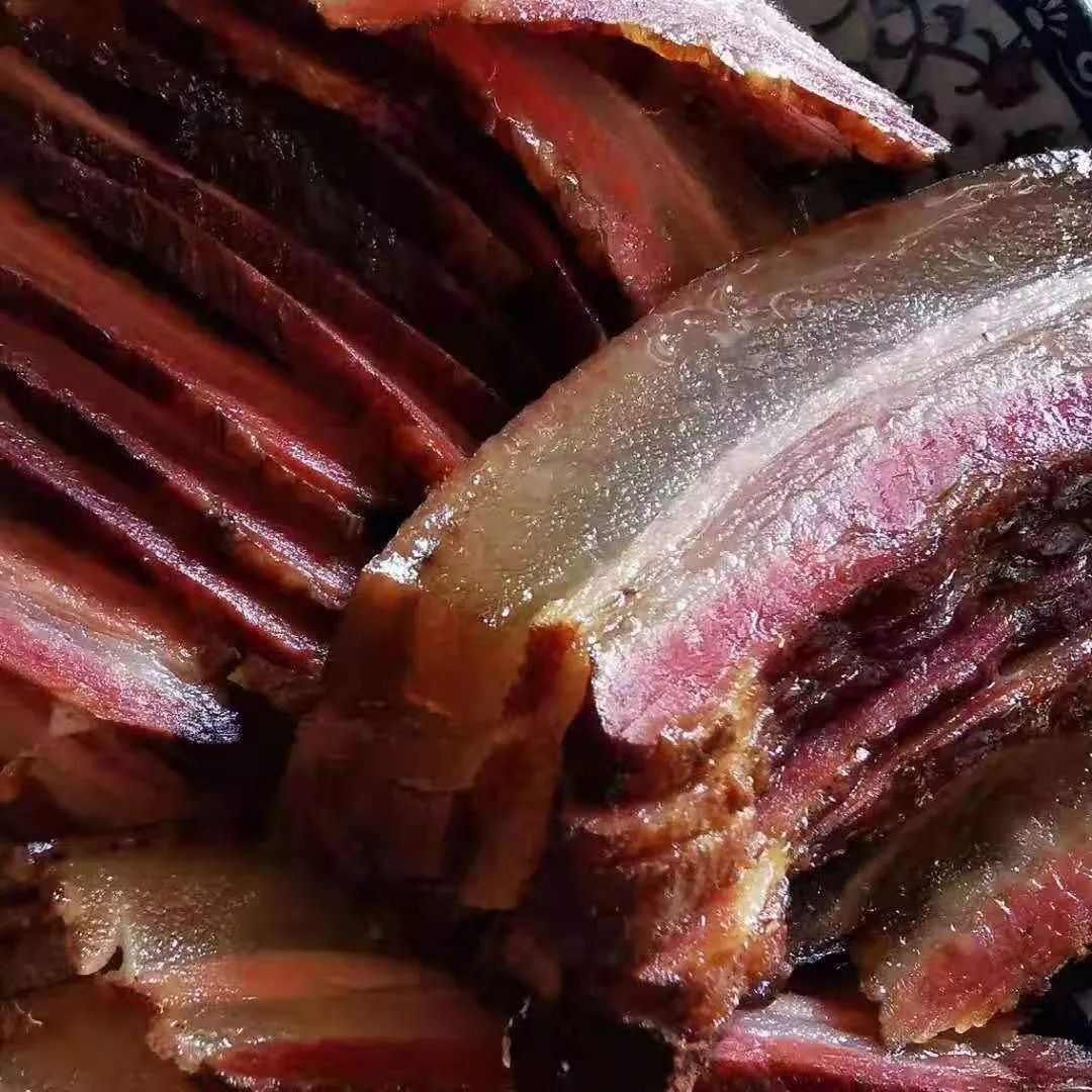 这样处理过的腊肉,带着独特的烟熏果木香,经过简单的烹饪,就能晶莹透亮,又糯又香,入口即化,一口沦陷。