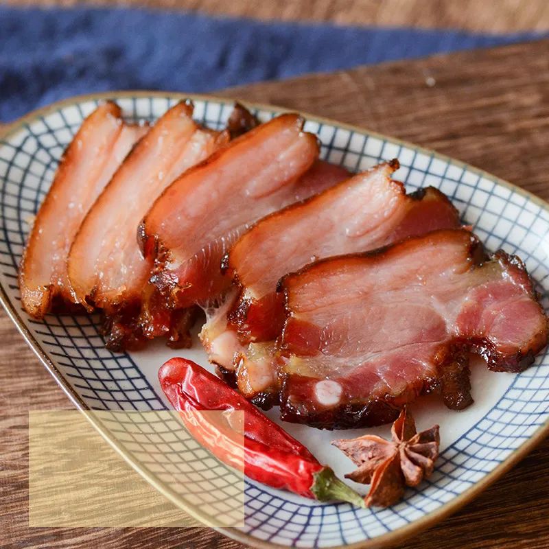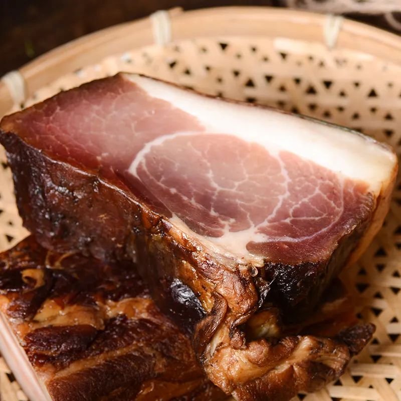 正宗的土家腊肉,是一定要小火慢熏的。短时间的快速急熏,切开之后和鲜肉几乎无差异,水分很重,捏起来很软,吃起来更是一言难尽。