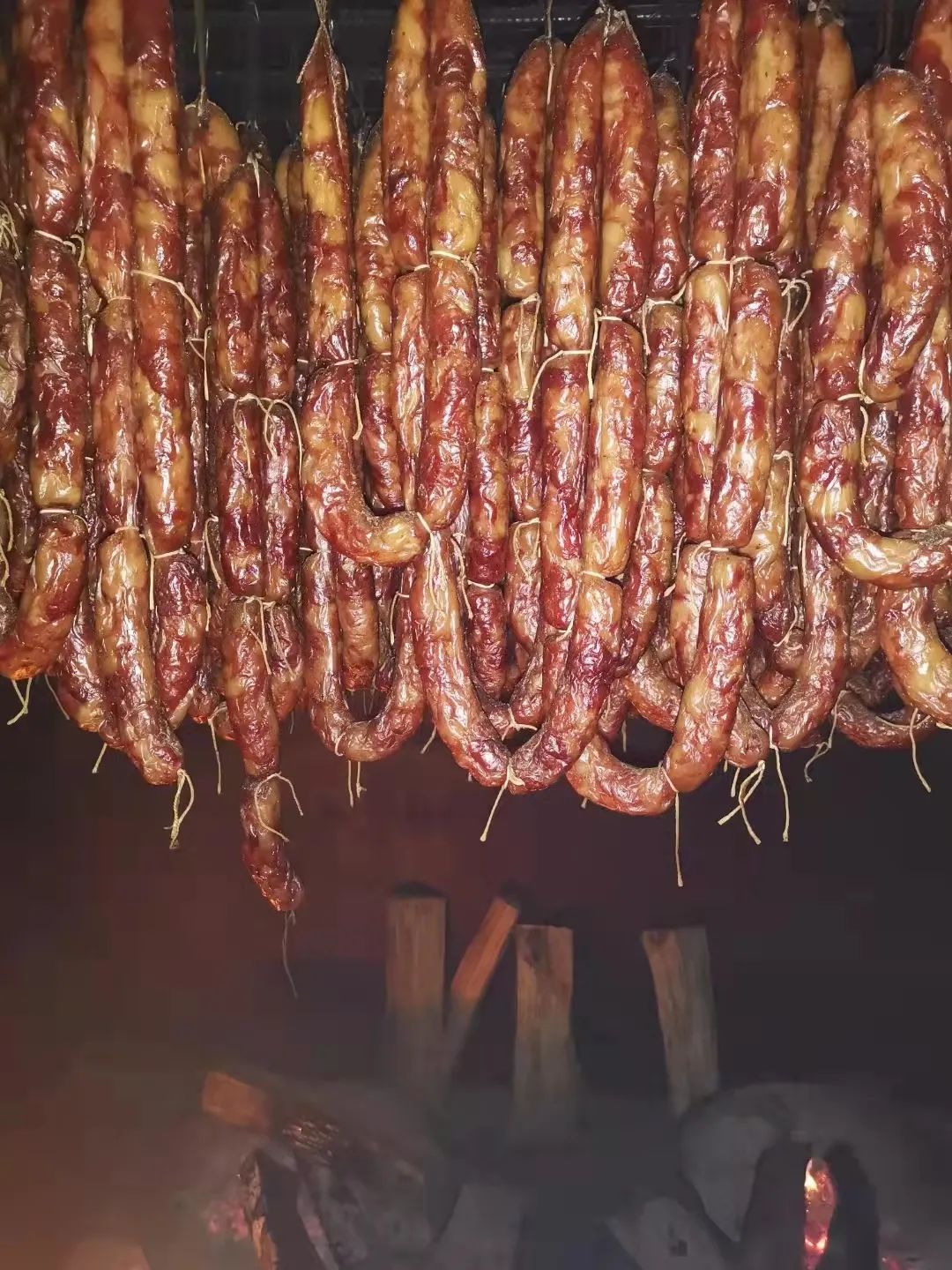 有着整套完整的土猪收购网络,每头猪都经过正规的检验检疫后,才能进行宰杀,当天腌制腊肉或做成香肠。