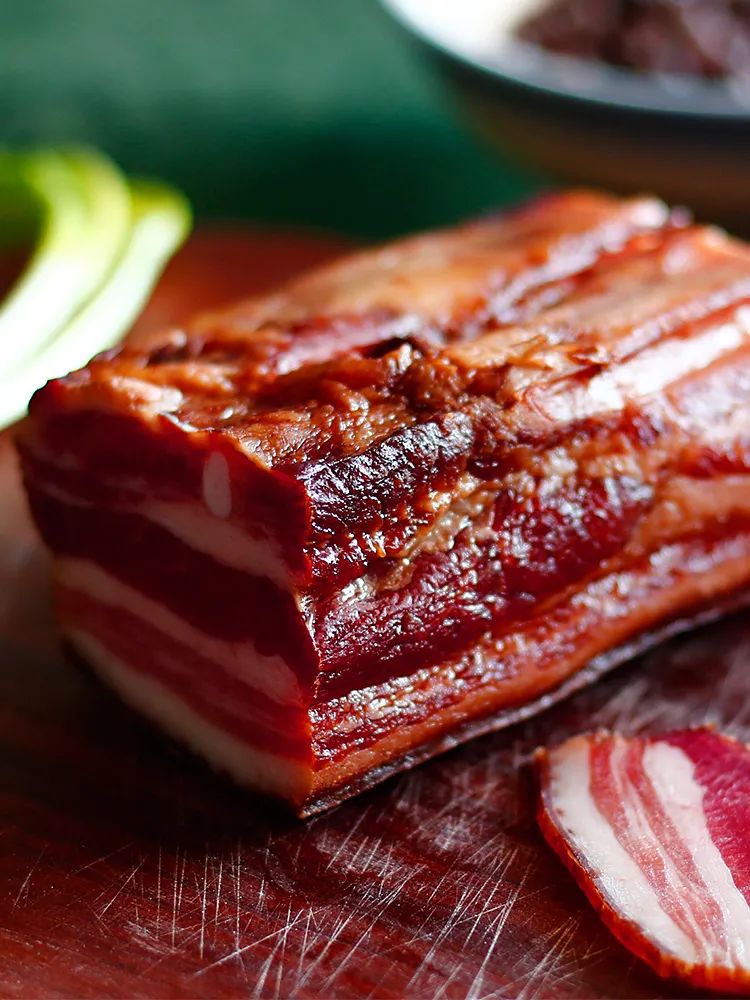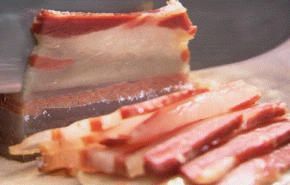以两层和三层五花肉居多,少部分可以达到5层之多。肥瘦适宜,口感软糯。