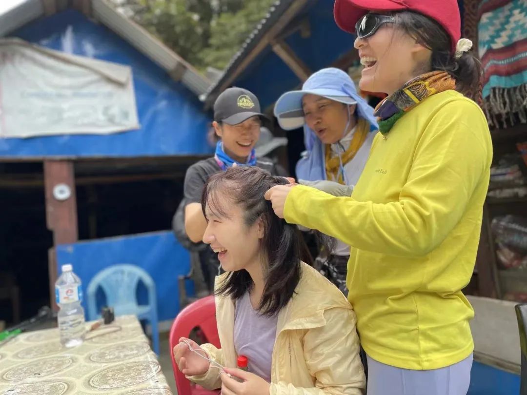 图/子君:偶遇一行扎麻花辫的欧洲美女,现场教学