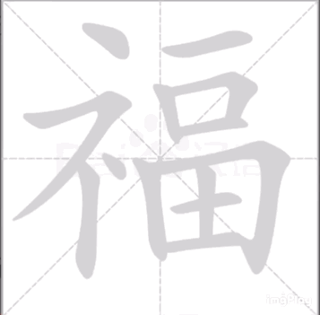 福字有多种字形,但间架结构不能改变,书写时要以左小右大,左窄右宽,左疏右密的原则去变幻字形。