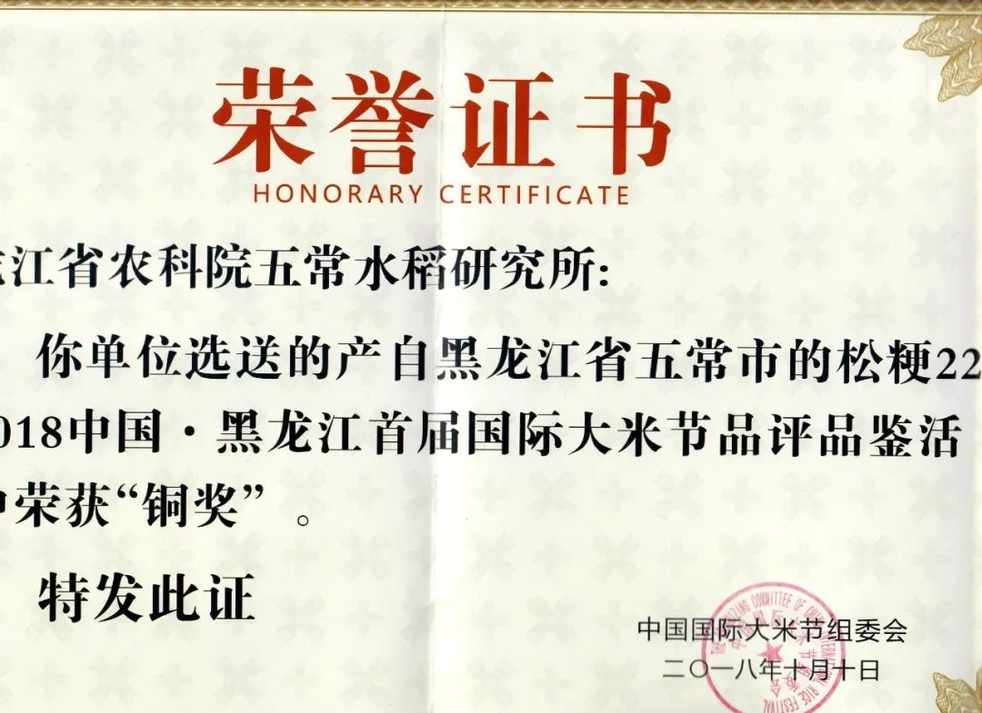 目前五常水稻研究所凭借优质的产品质量,已荣获诸多国际大奖。