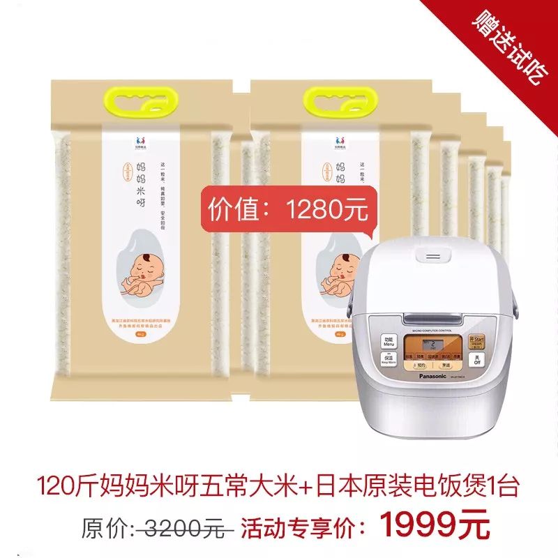 120斤五常大米+2斤免费试吃装+日本原装电饭煲1台(市场价:1200元)