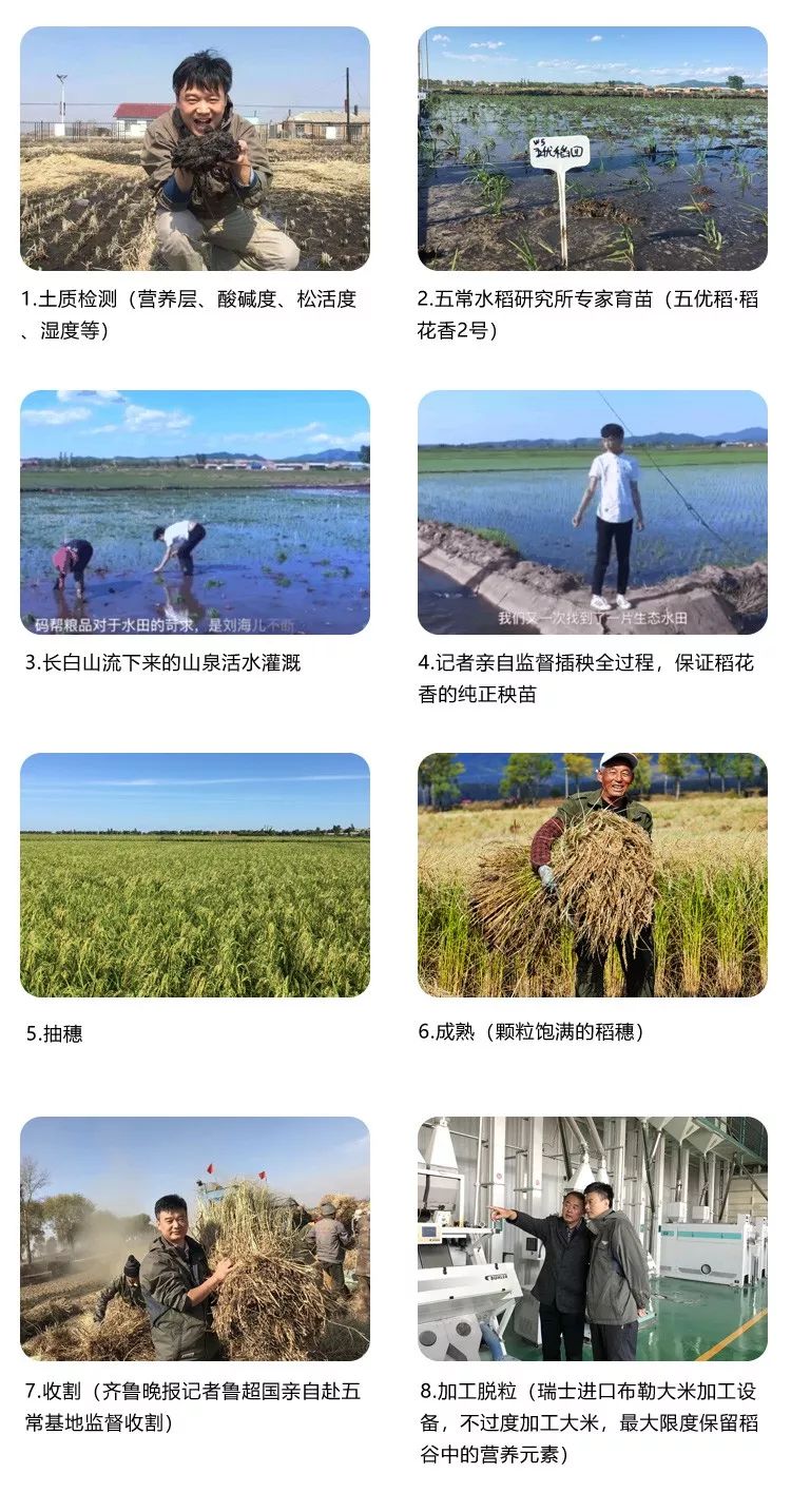 用长白山上流下来的天然泉水灌溉,用五常水稻研究所纯正稻花香2号育种,统一种植、统一管理,真正在源头上保证了稻米的品质。