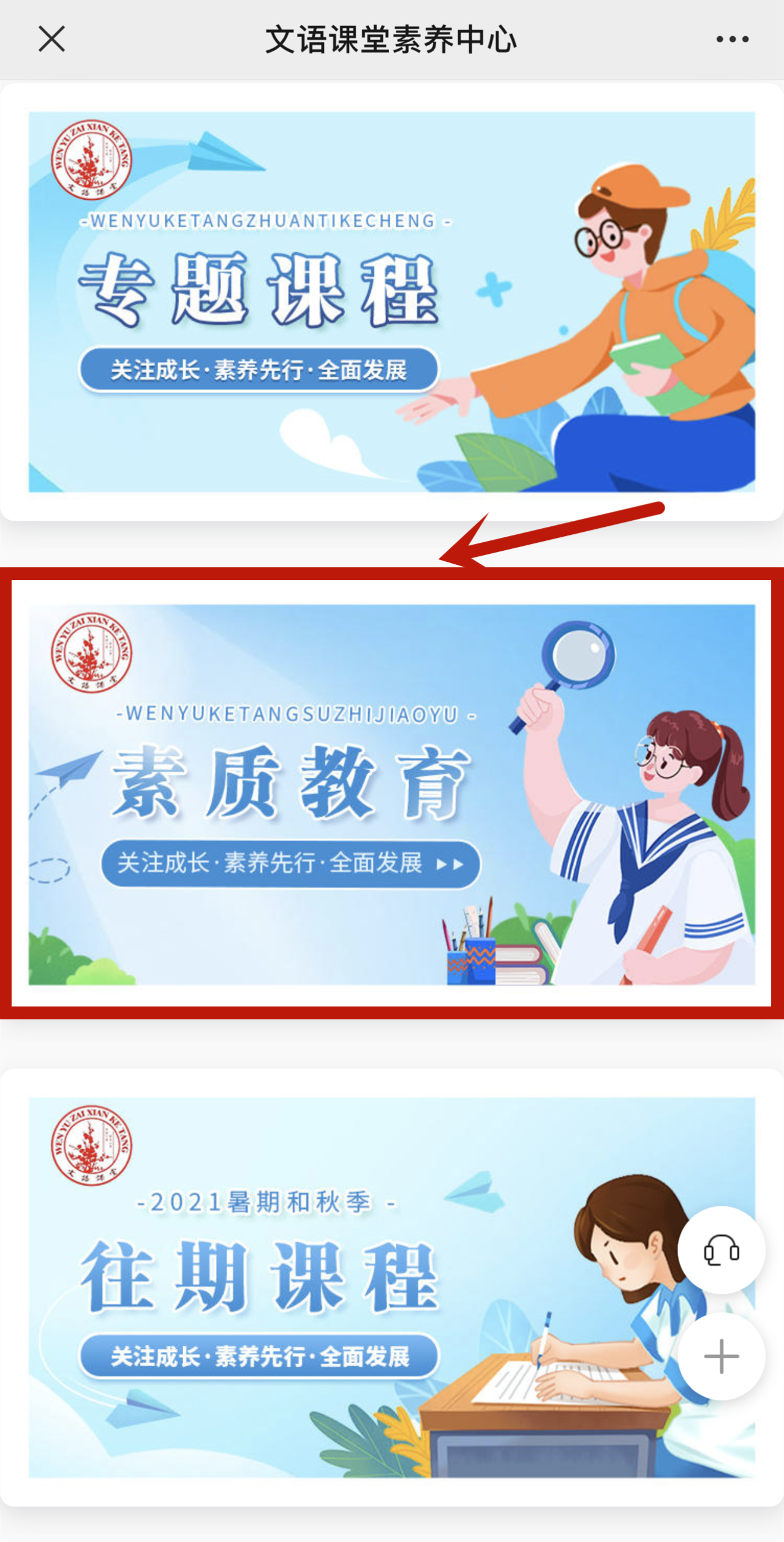 2、找到素质教育专栏,点击进入。