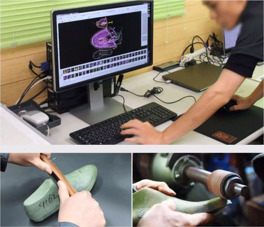 设计这款鞋子的时候,光脚膜就要经过数次打版,多道复杂的制作工序。