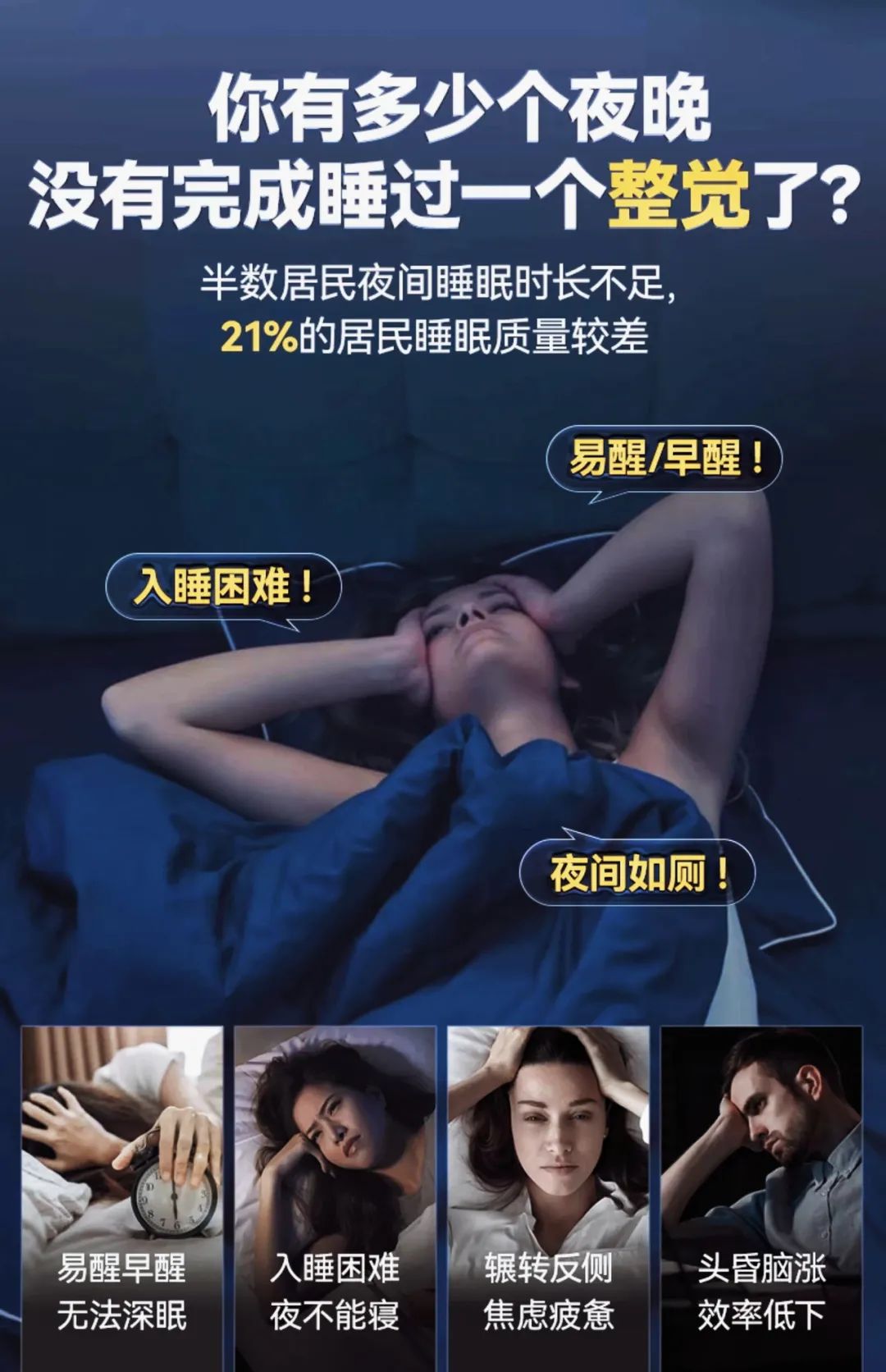 当城市陷入沉睡,却有无数双眼睛在黑暗中倔强地睁着。他们盯着天花板,数着羊,听着钟表滴答声,在焦虑与疲惫中等待黎明。这不是电影桥段,而是中国3亿失眠者正在经历的深夜剧场。