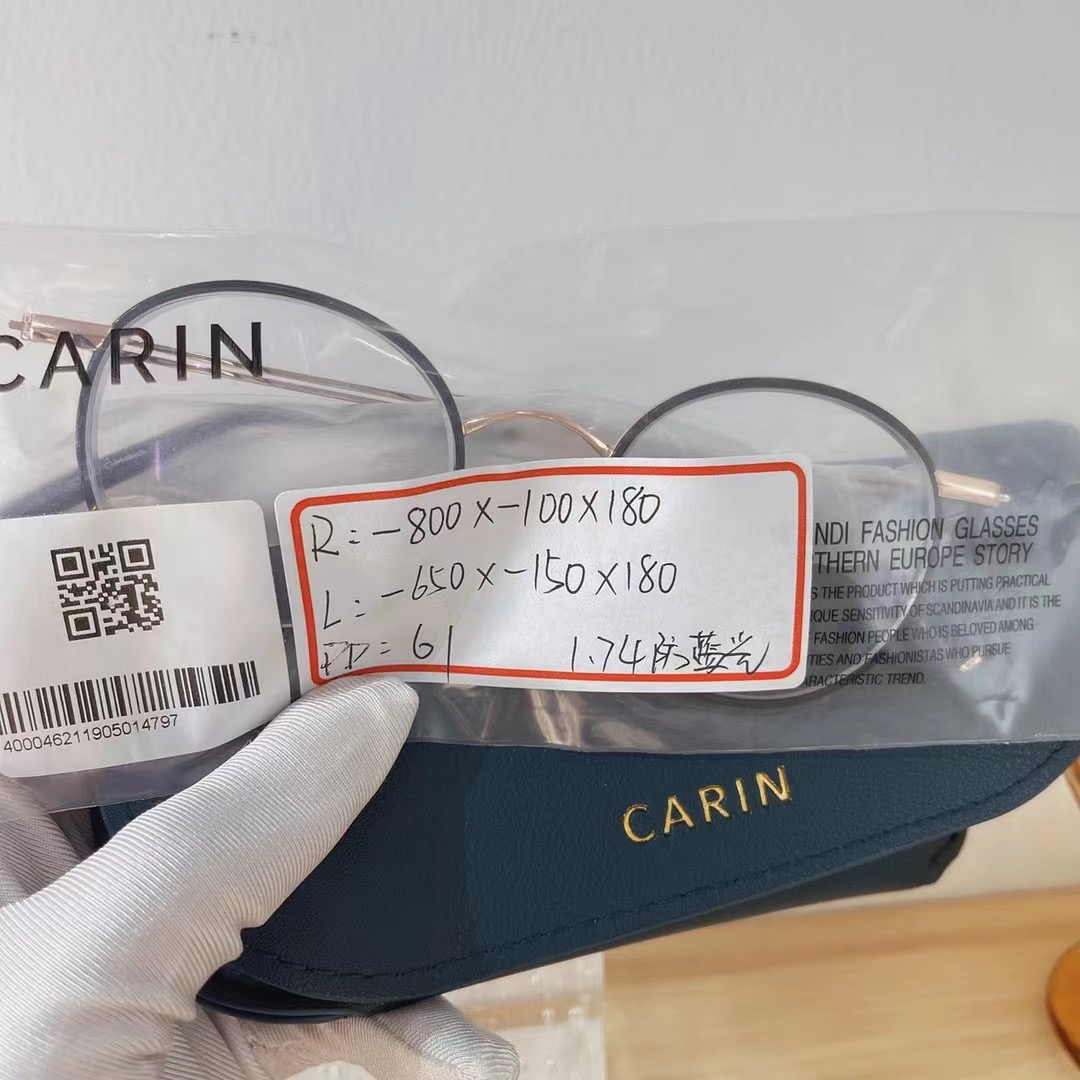 客配CARIN文艺圆框黑金色800/650+散光100/1501.74防蓝光镜片