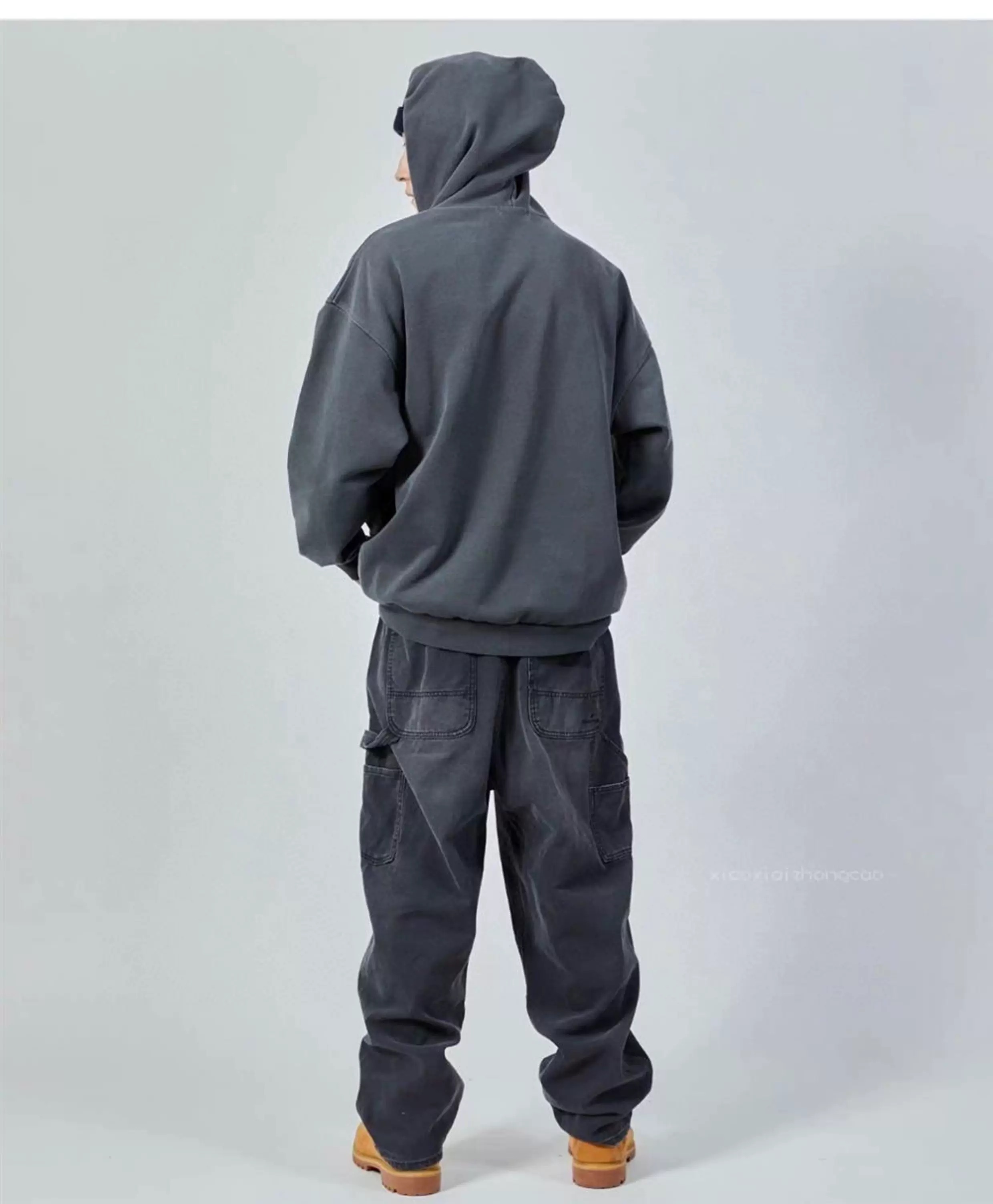 全套辅料齐全,水洗做旧复古风格,颜色很nice,男女都能穿,宽松版型,日常休闲、街头都很合适。