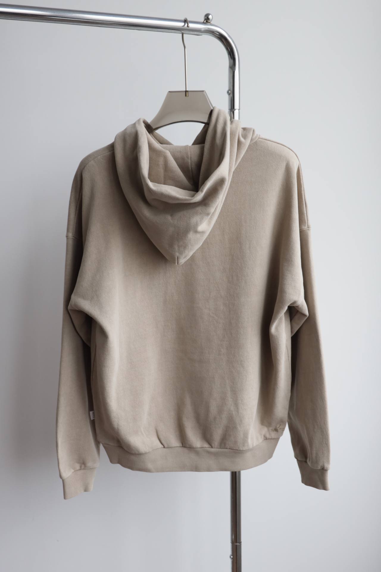 胸前经典字母贴布刺绣,侧缝小标,后摆刺绣小字母,定制帽绳,细节做工精致。