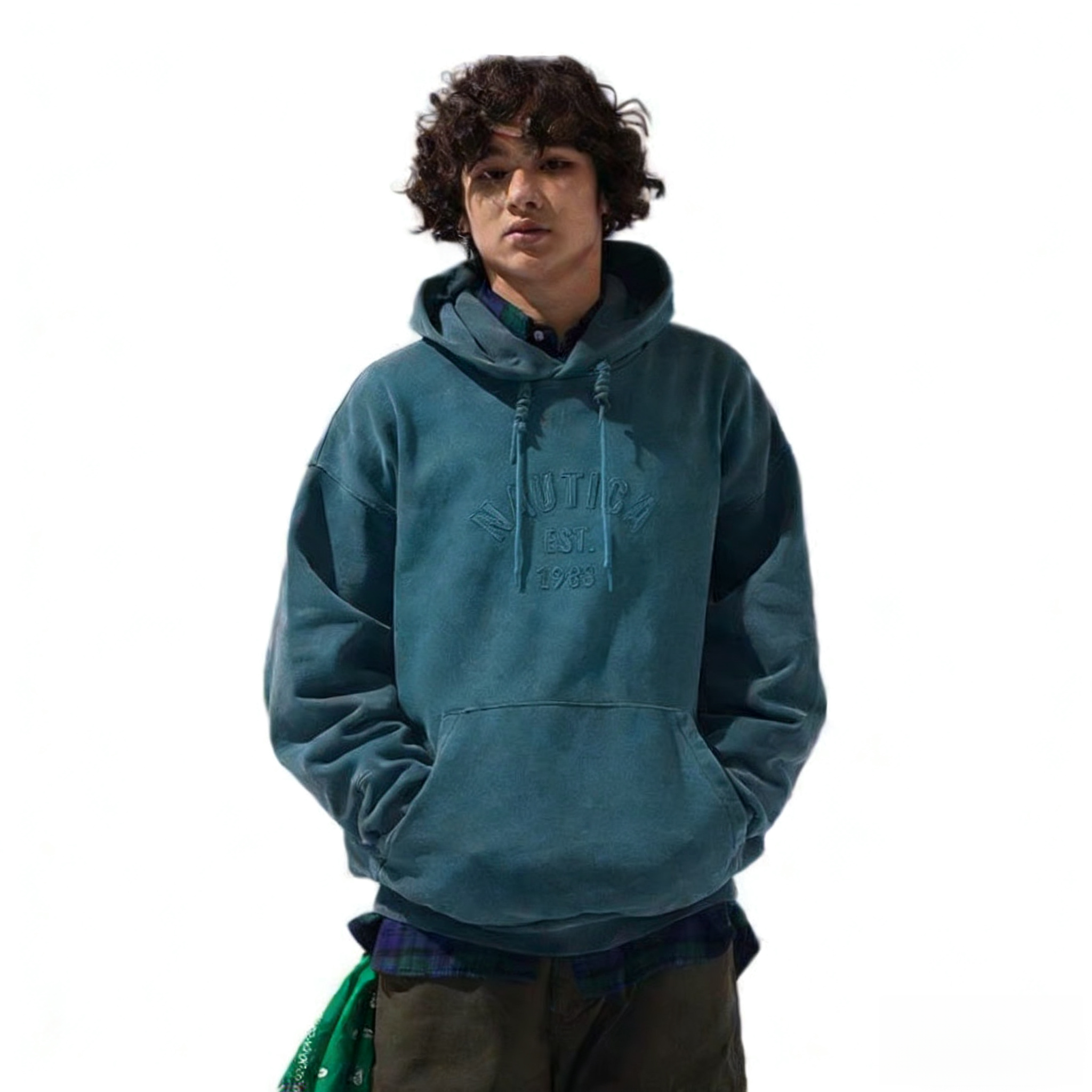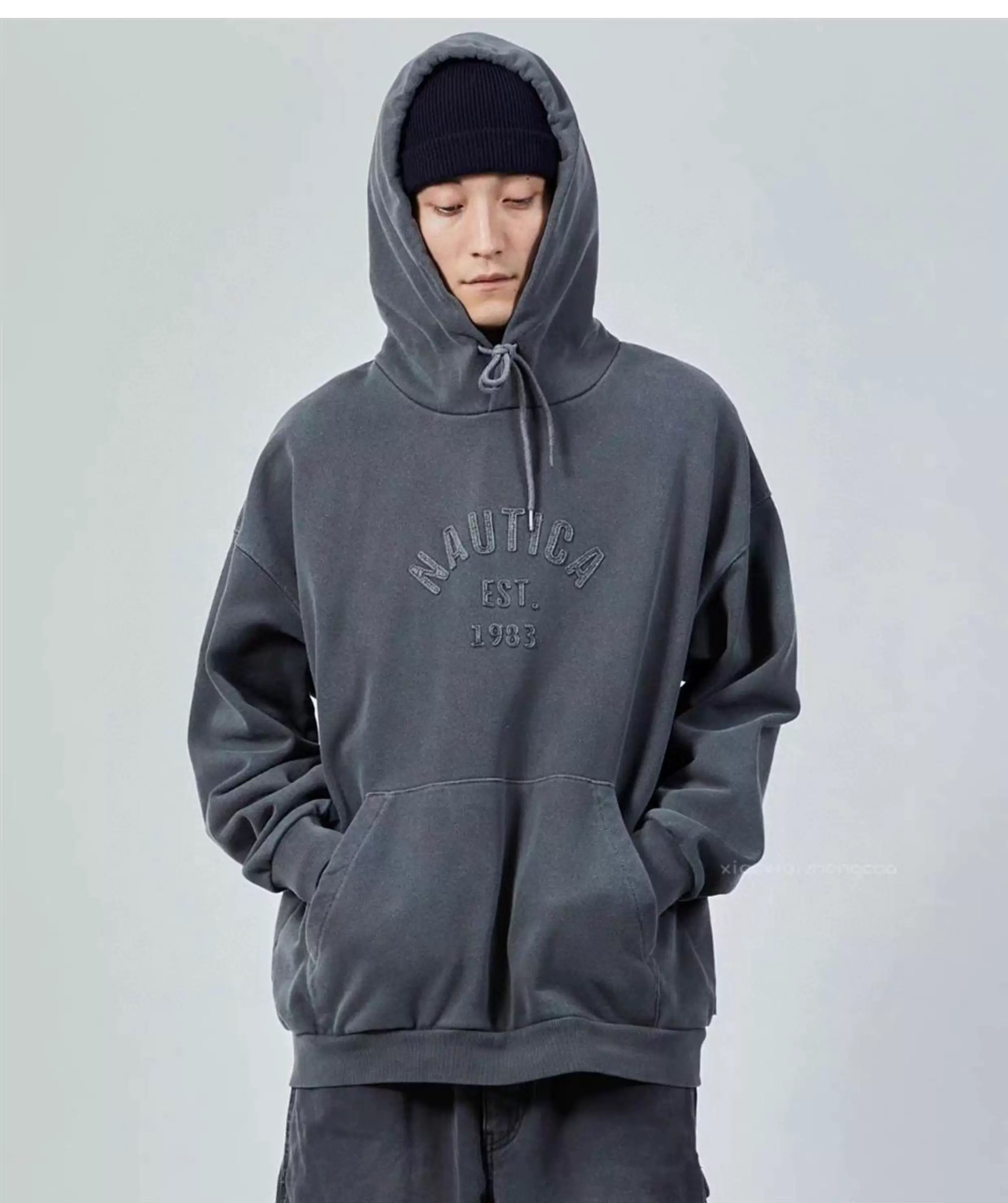 Nautic@ 长骨川 贴布绣水洗做旧 复古连帽卫衣