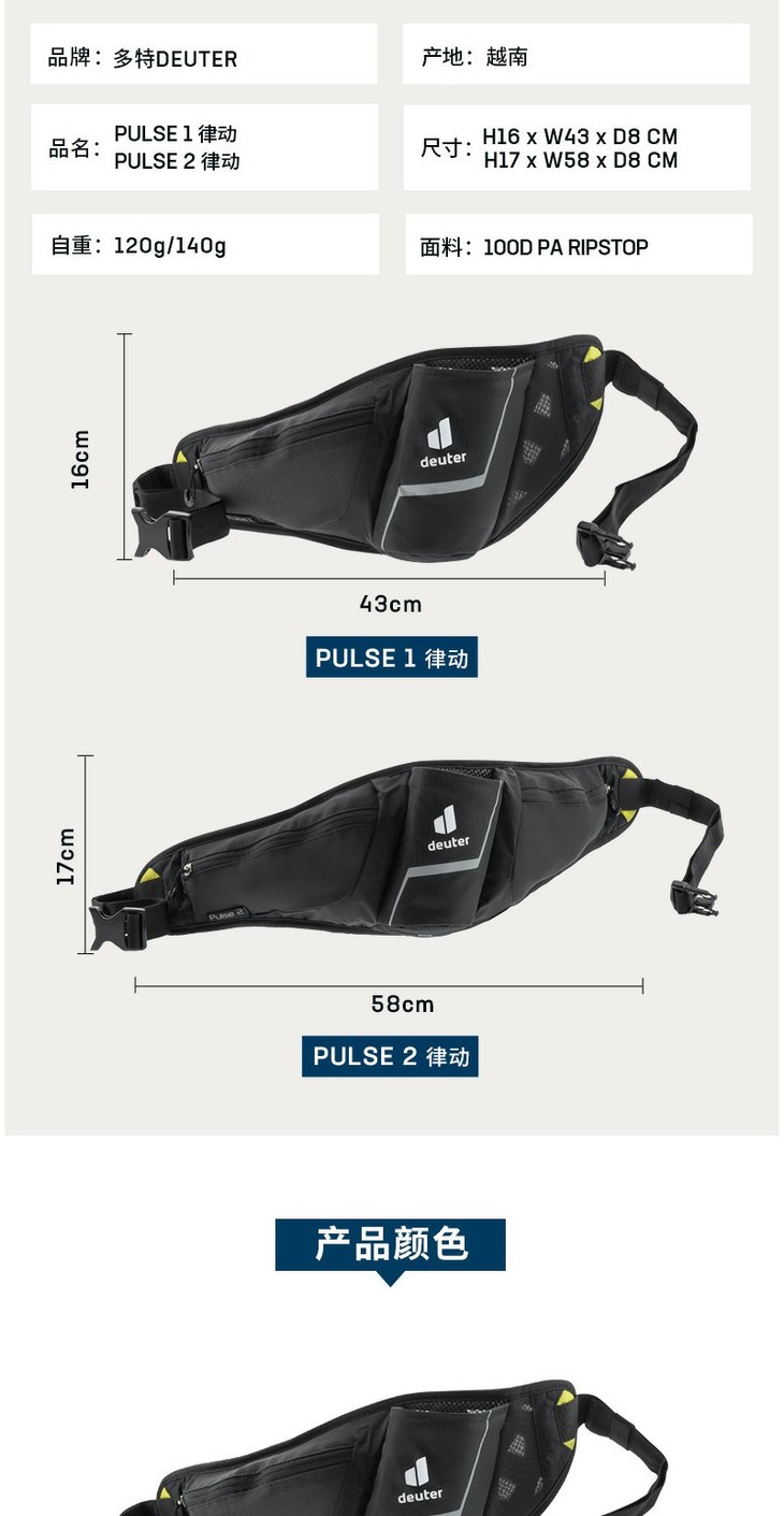 【品牌故事:120年专注,品质保证】 Deuter,一个有着120年历史的德国品牌,自1898年成立以来,一直以精湛工艺和卓越设计闻名全球。作为背包界的“老炮儿”,它对每一个细节的执着,让每一件产品都堪称经典。这款运动水壶腰包延续了品牌一贯的高标准,用心打造每一处细节。