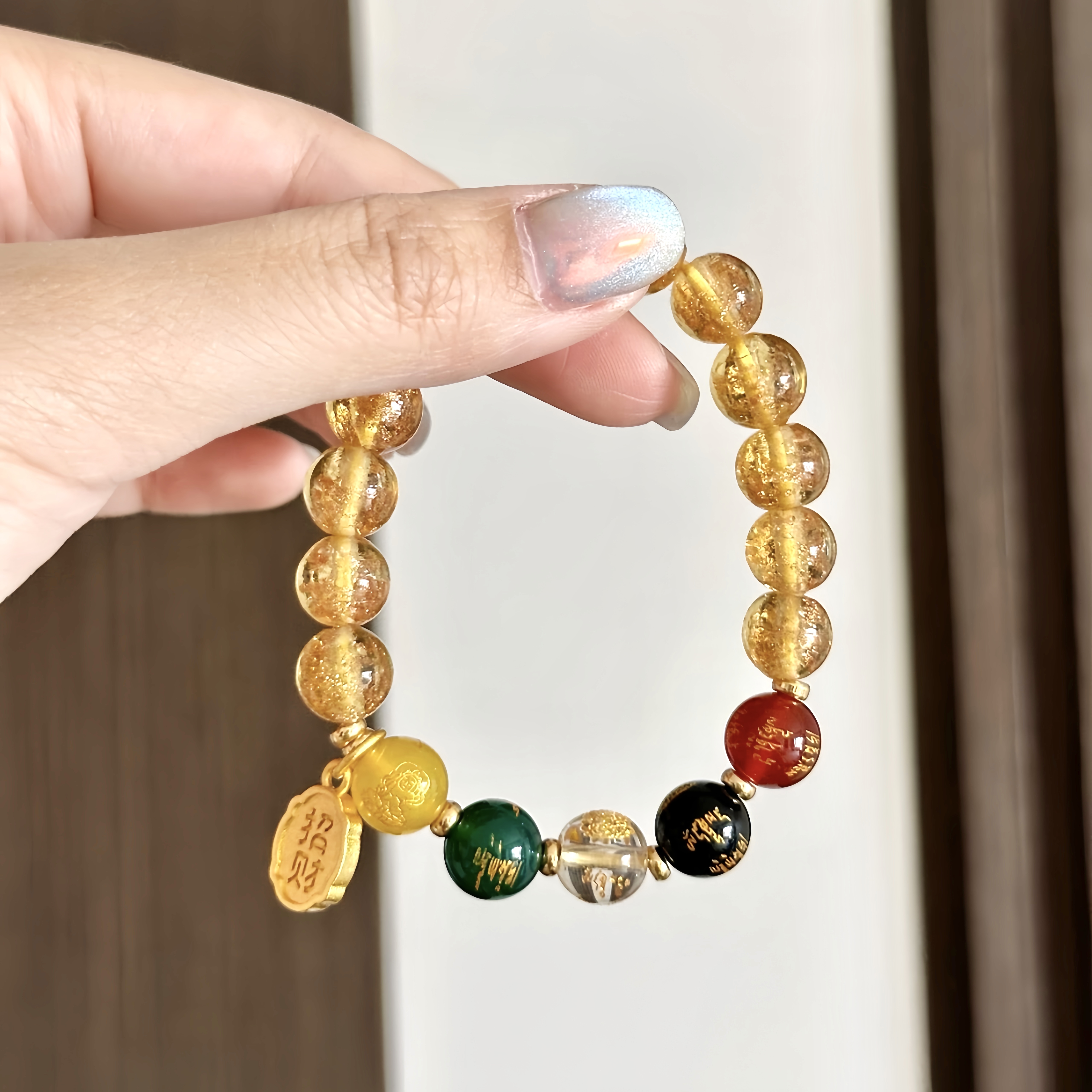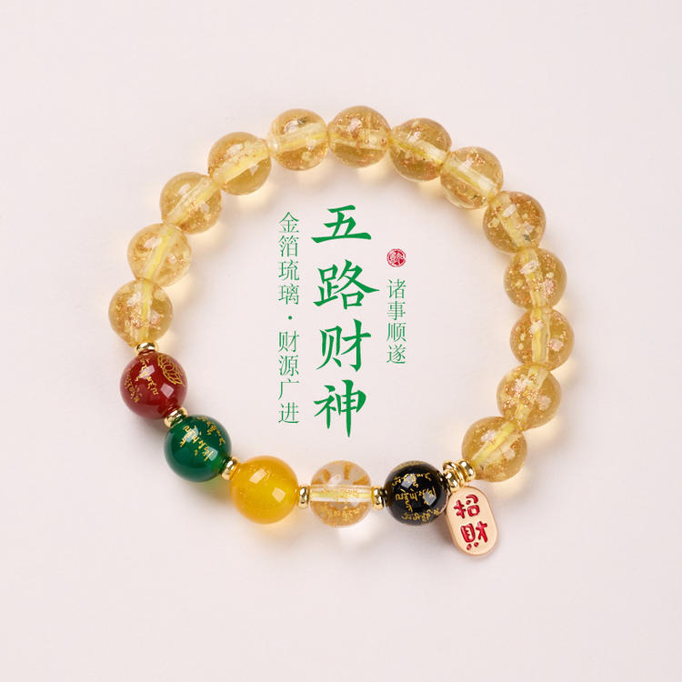 💛每一颗香灰琉璃珠都是通透的、金灿灿的,搭配五路财神转运珠,整串都是是财富滚滚的颜色🥰