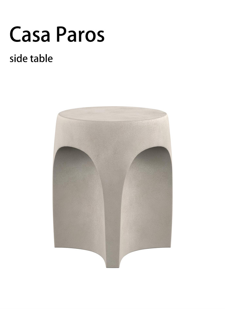 Casa Paros系列侘寂风圆几,灵感来源于原始的鼓形,圆润设计没有棱角,侧面深雕拱形设计十分亮眼。材质是Bedrock饰面仿混凝土哑光元素,雕塑立体感高级到不行。圆形茶几桌腿镂空切割,给它又增添几分轻盈氛围,中性自然色彩自由搭配,效果超出彩。